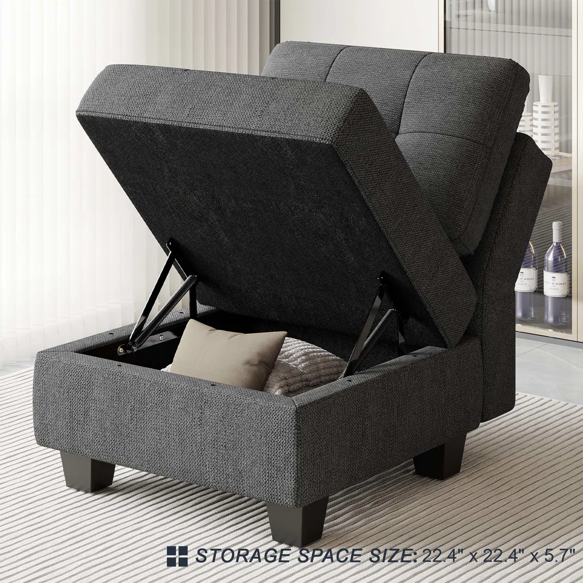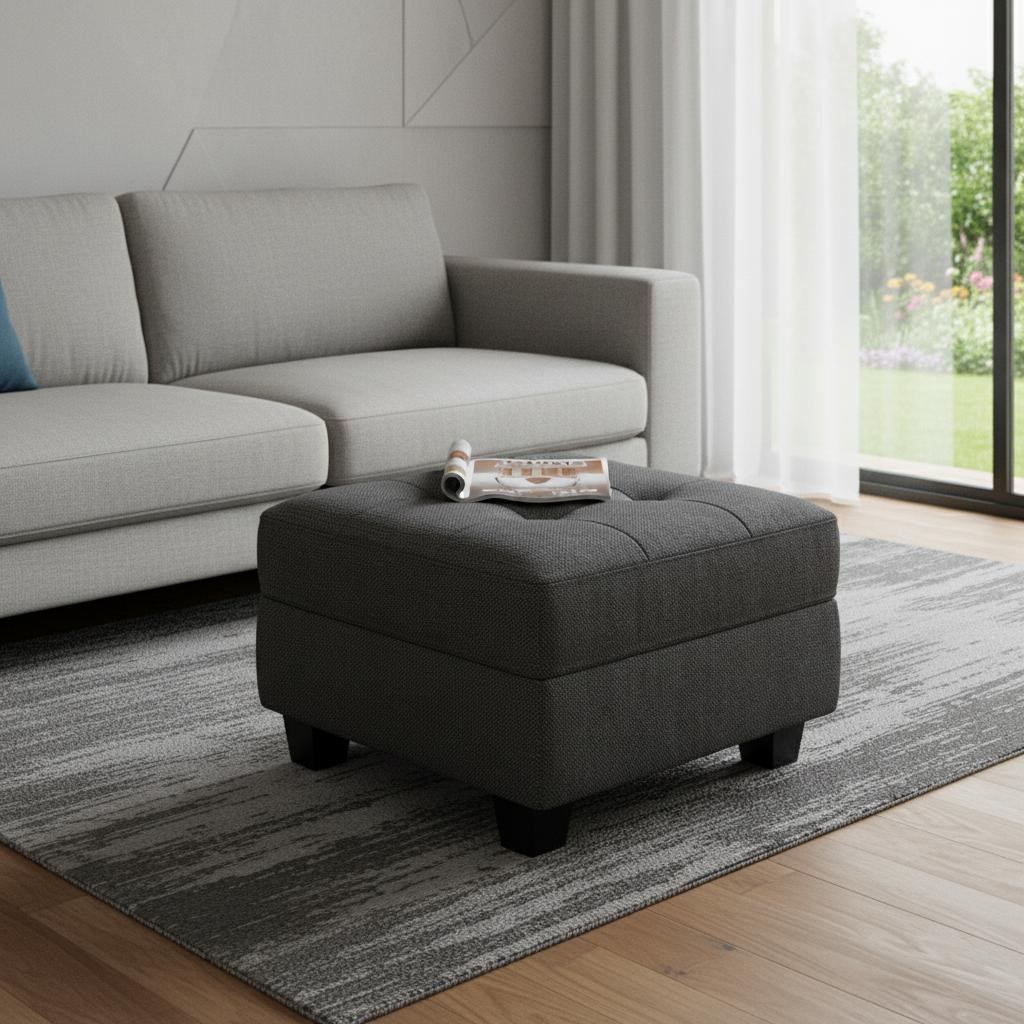 wood linen tufted storage ottoman, linen tufted storage ottoman, tufted storage ottoman, solid wood linen tufted storage, 26" gray black solid wood |