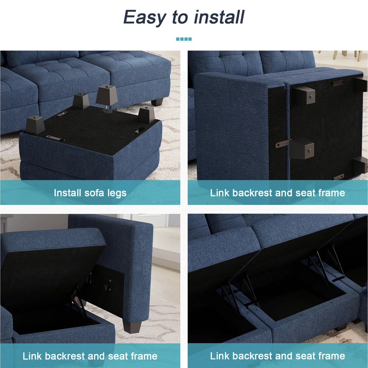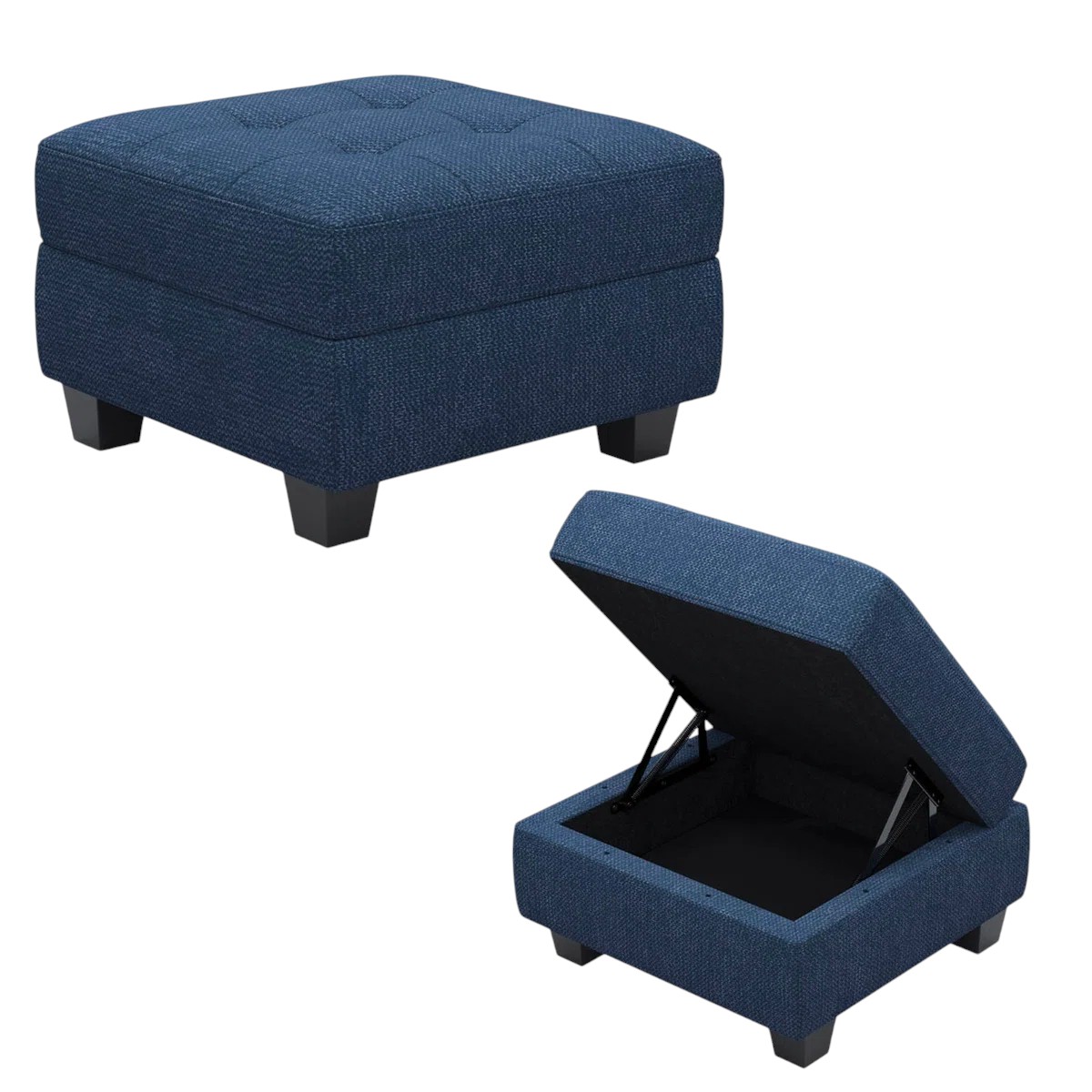 wood linen tufted storage ottoman, linen tufted storage ottoman, tufted storage ottoman, blue black solid wood linen, 26" blue black solid wood |