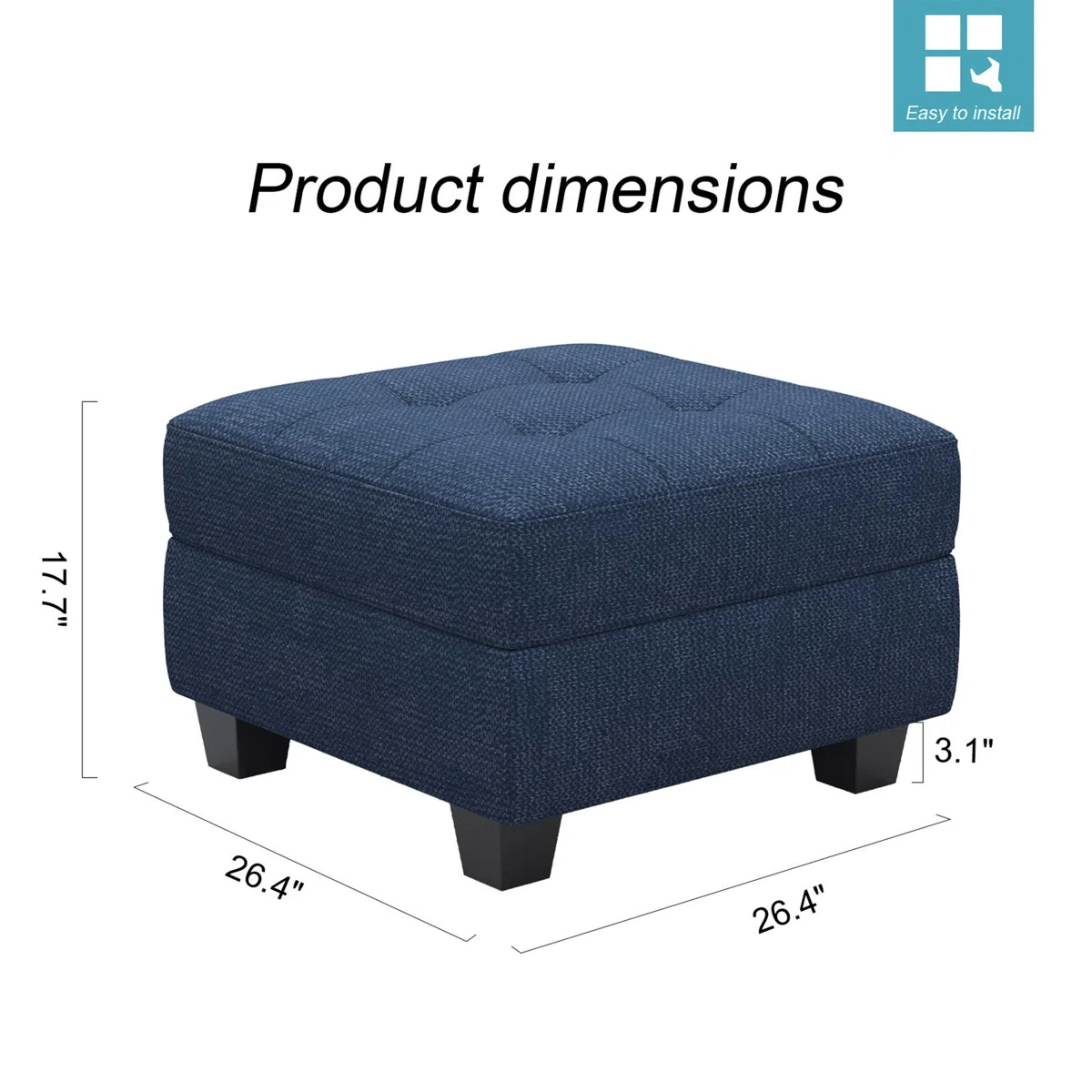 Optimize your space and add some charm to your room with the 26-inch blue and black solid wood and linen tufted storage ottoman. Designed to discretely add hidden storage to your room without sacrificing seating or foot rest space. Expertly upholstered with padding and button tufted stitching, this ottoman is as comfortable as it is good looking. Easy to blend into most any room, a ottoman is a way to add a good looking accent to your space that can also be practical and useful. 17.70-inch h x 26.40-inch w x 26.40-inch d.