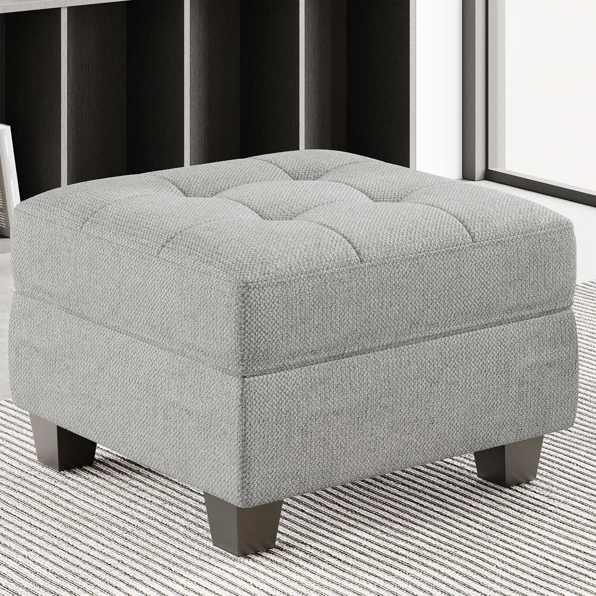 wood linen tufted storage ottoman, linen tufted storage ottoman, tufted storage ottoman, gray black solid wood linen, solid wood linen tufted storage |