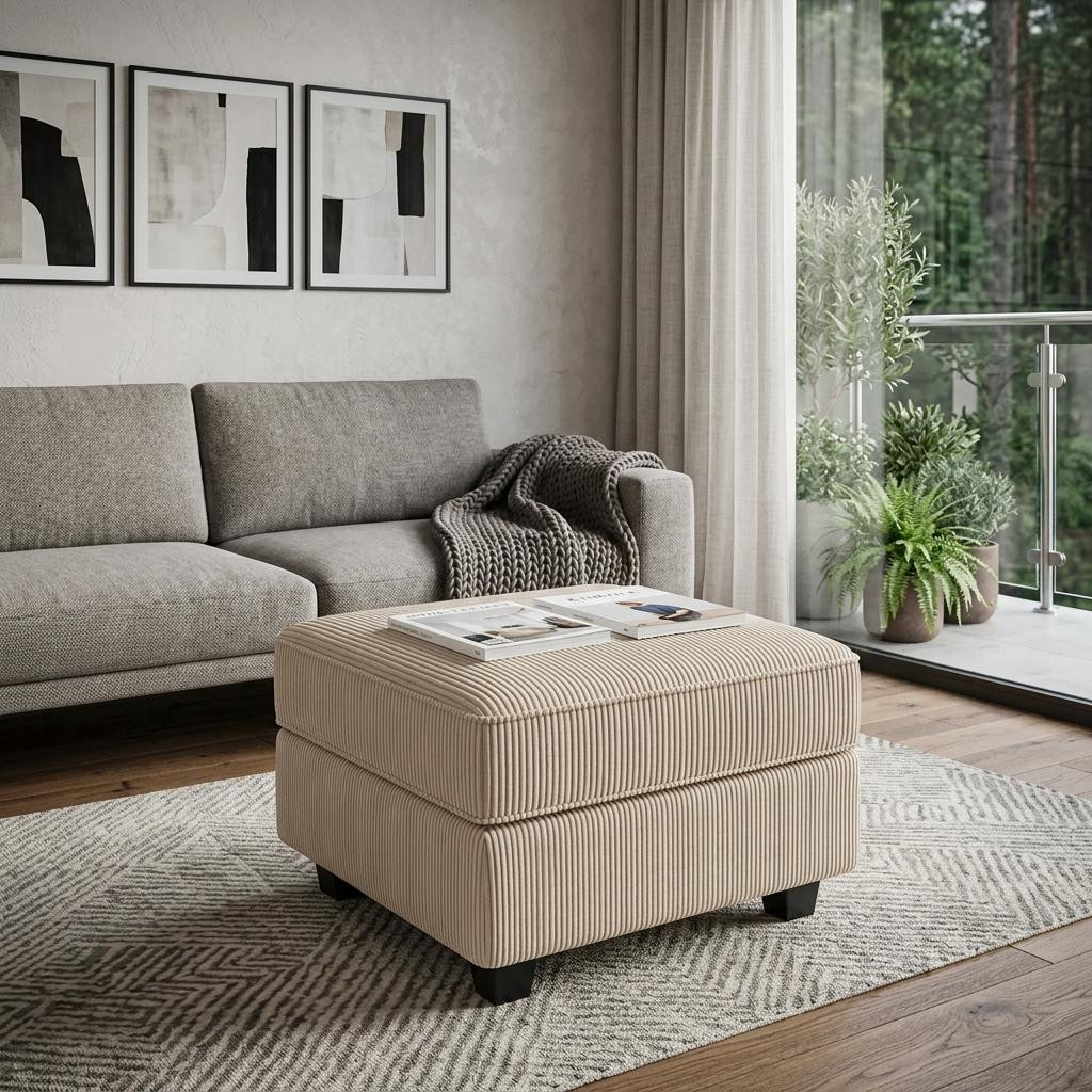beige black corduroy storage ottoman, black corduroy storage ottoman, corduroy storage ottoman, 26" beige black corduroy storage, beige black corduroy storage |