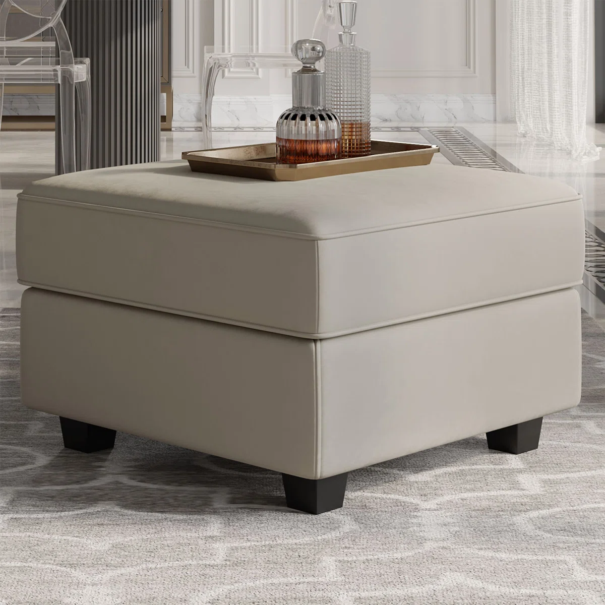 Practicality and fashion mix together with this handy 26-inch gray and black microfiber storage ottoman. Designed to discretely add hidden storage to your room without sacrificing seating or foot rest space. Expertly upholstered with padding in a soft solid color microfiber, this ottoman is as comfortable as it is good looking. Ottomans are multi-functional additions to your space that add fashion and practical value. 17.70-inch h x 26.40-inch w x 26.40-inch d.