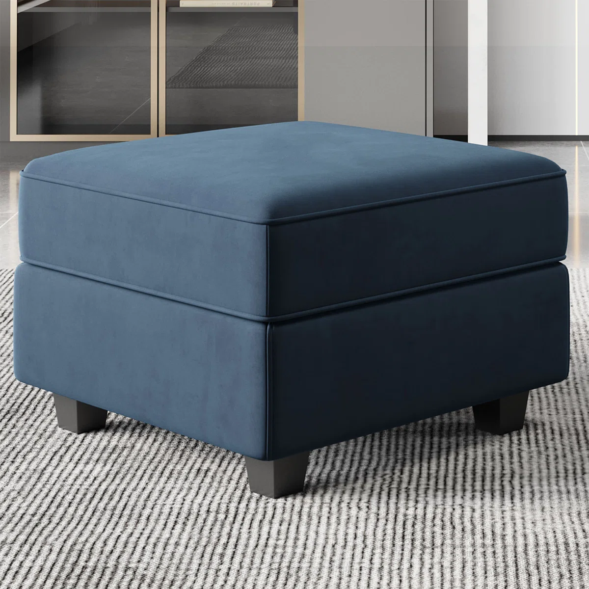 blue black velvet storage ottoman, black velvet storage ottoman, velvet storage ottoman, 26" blue black velvet storage, blue black velvet storage |