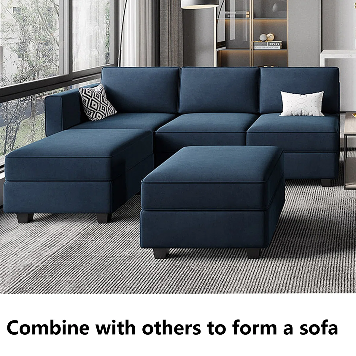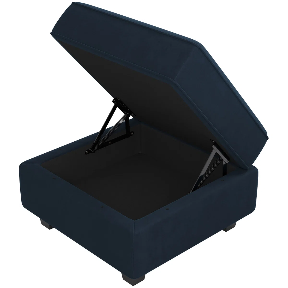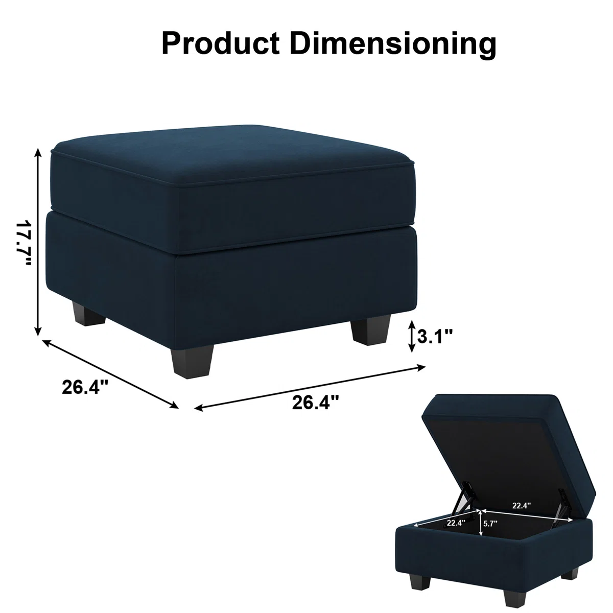 Practicality and fashion mix together with this handy 26-inch blue and black velvet storage ottoman. Designed to discretely add hidden storage to your room without sacrificing seating or foot rest space. Expertly upholstered with padding in a soft solid color velvet, this ottoman is as comfortable as it is good looking. Ottomans are multi-functional additions to your space that add fashion and practical value. 17.70-inch h x 26.40-inch w x 26.40-inch d.
