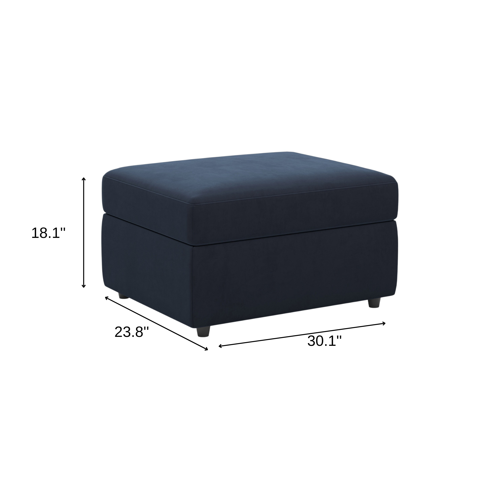 Get ready to relax with this 30-inch blue and black velvet storage ottoman. Designed to discretely add hidden storage to your room without sacrificing seating or foot rest space. Expertly upholstered with padding in a soft solid color velvet, this ottoman is as comfortable as it is good looking. Easy to blend into most any room, a ottoman is a way to add a good looking accent to your space that can also be practical and useful. 18.10-inch h x 30.10-inch w x 23.80-inch d.