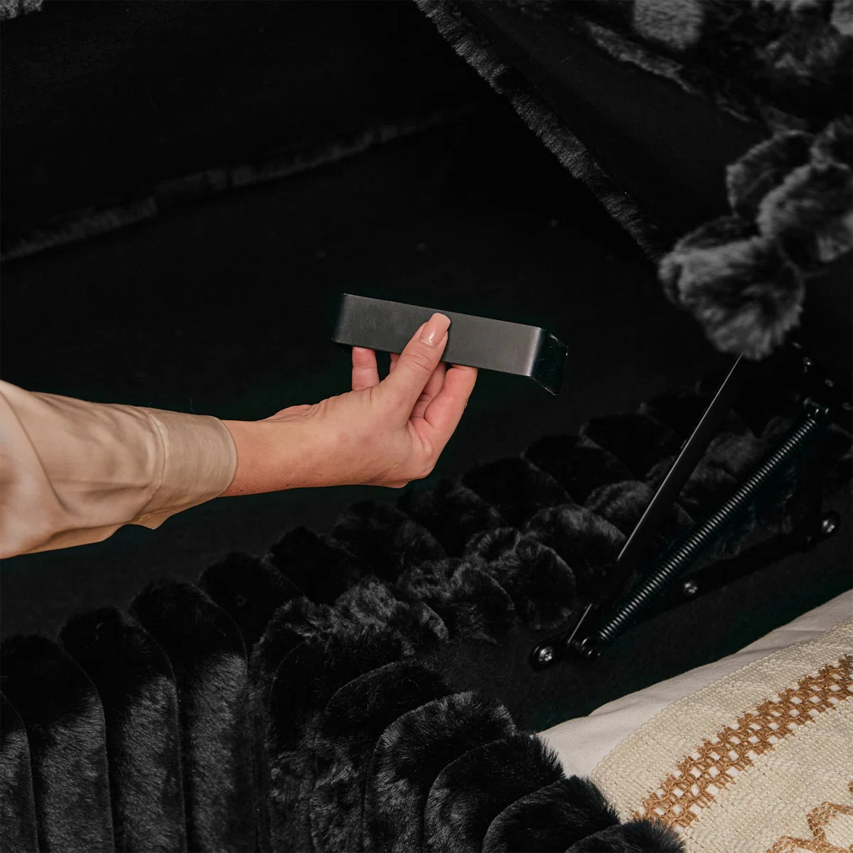 black faux fur storage ottoman, faux fur storage ottoman, fur storage ottoman, 30" black faux fur storage, black faux fur storage |