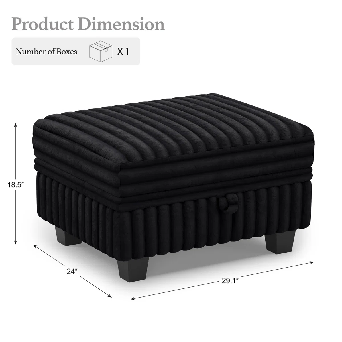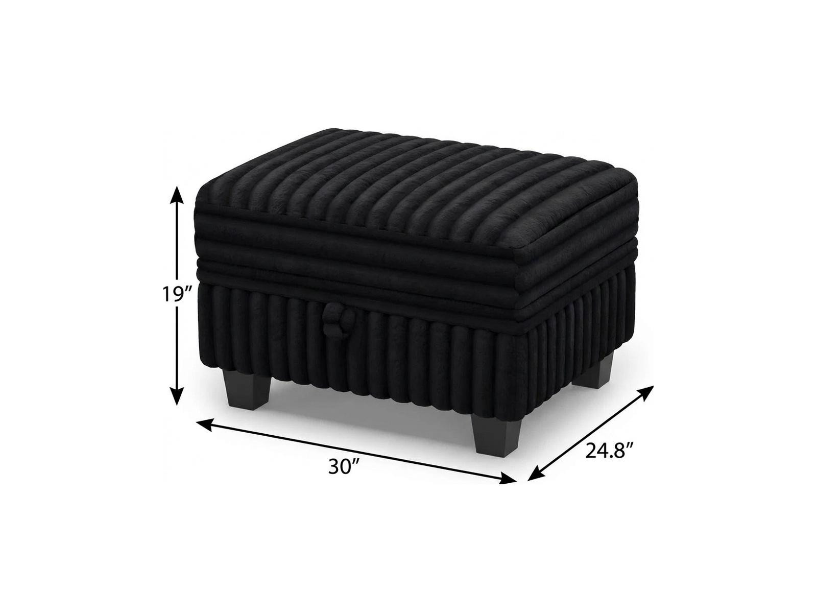 Add a good looking decorative accent to your space that is also practical for seating. Designed to discretely add hidden storage to your room without sacrificing seating or foot rest space. A solid black plastic frame is finished off with a matching black upholstery seat, giving this ottoman a chic monotone look. Expertly upholstered with padding in a soft solid color faux fur, this ottoman is as comfortable as it is good looking. Easy to blend into most any room, a ottoman is a way to add a good looking accent to your space that can also be practical and useful. 19.00-inch h x 30.00-inch w x 24.80-inch d.