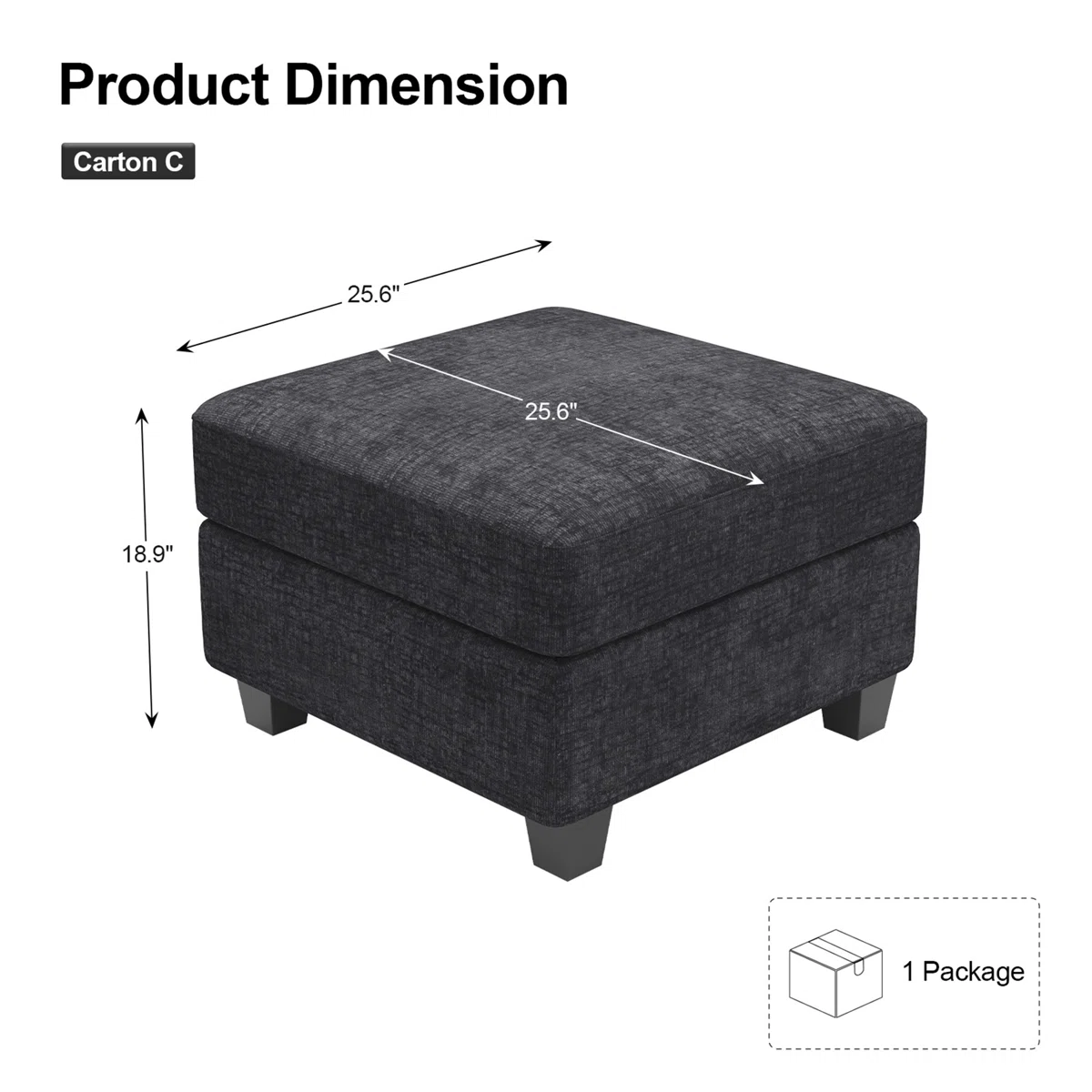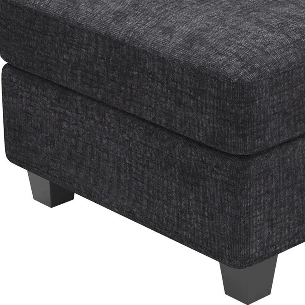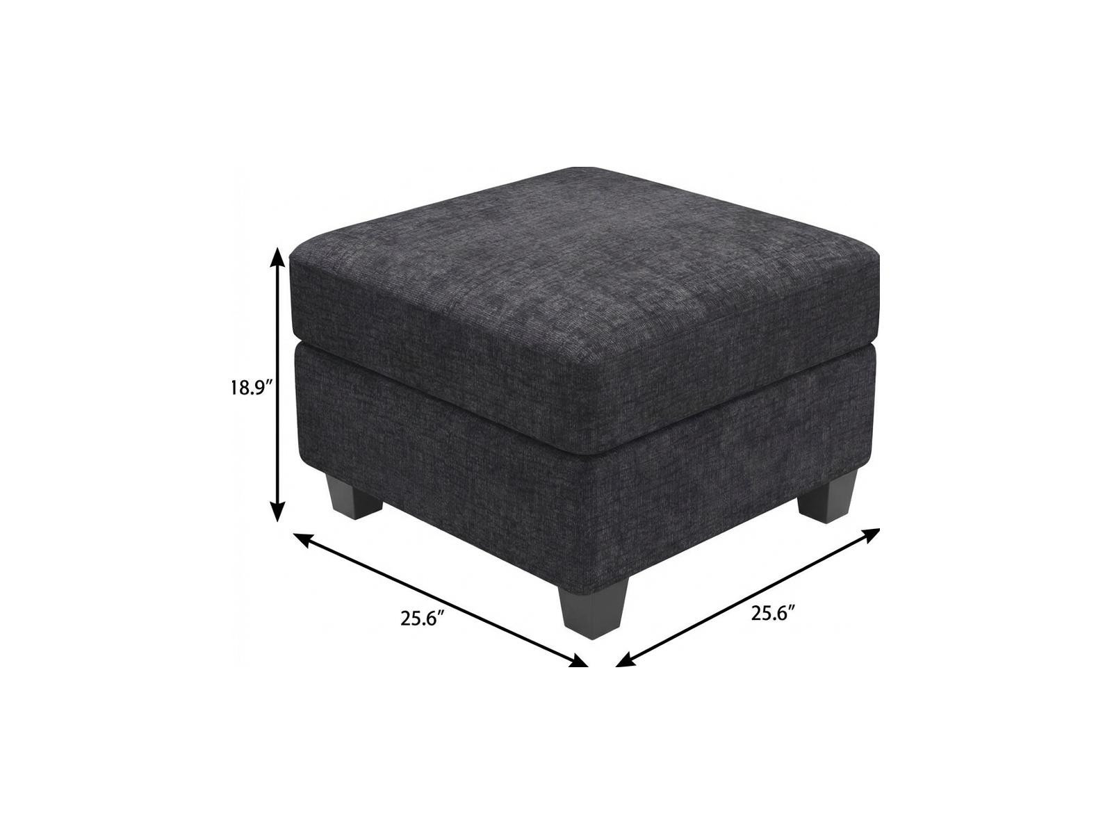 Optimize your space and add some charm to your room with the 26-inch gray and black chenille storage ottoman. Designed to discretely add hidden storage to your room without sacrificing seating or foot rest space. Expertly upholstered with padding in a soft solid color chenille, this ottoman is as comfortable as it is good looking. Easy to blend into most any room, a ottoman is a way to add a good looking accent to your space that can also be practical and useful. 18.90-inch h x 25.60-inch w x 25.60-inch d.