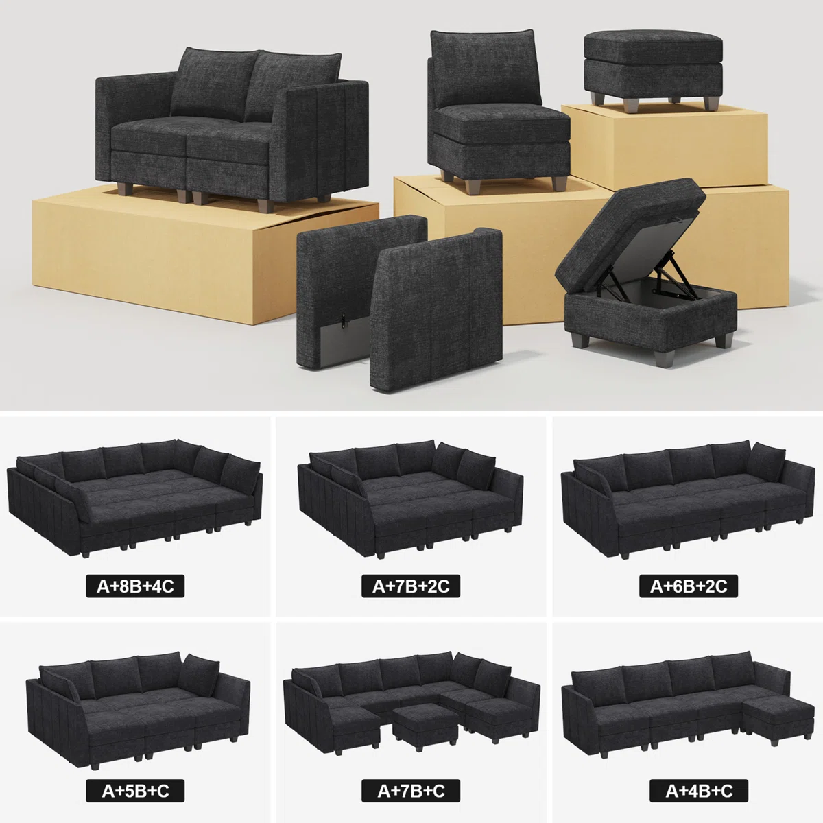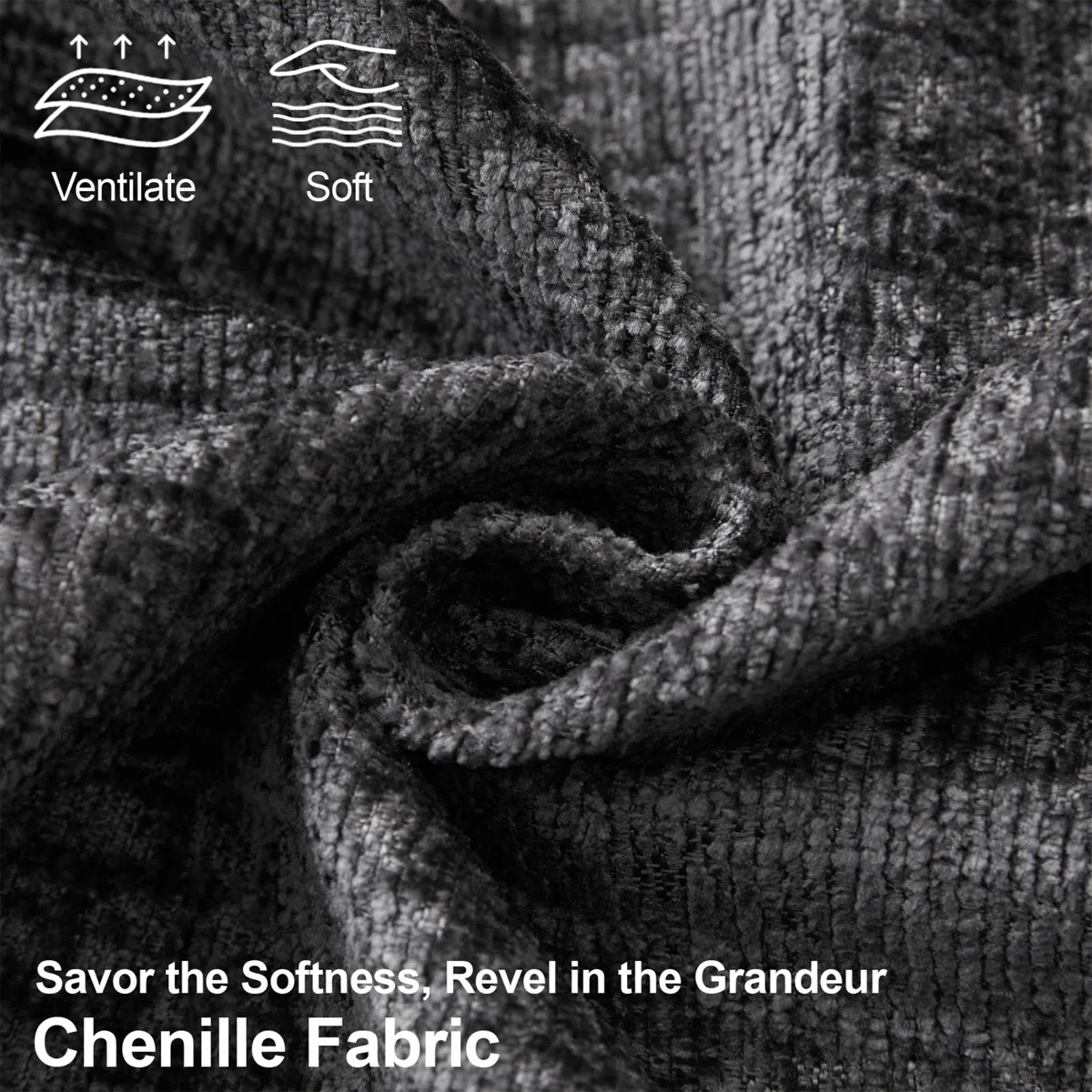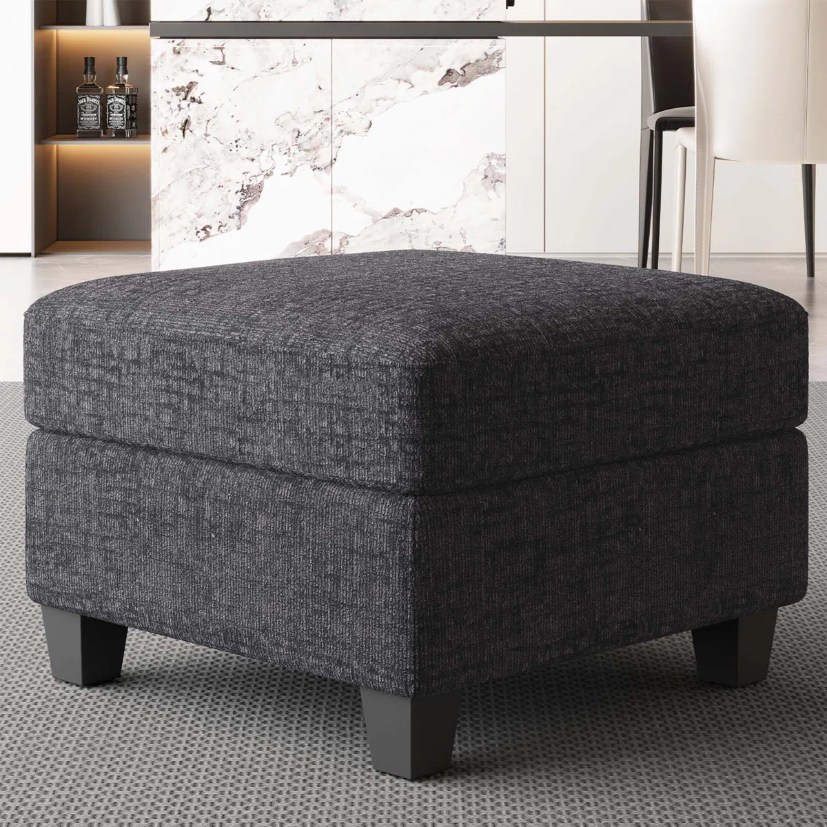 gray black chenille storage ottoman, black chenille storage ottoman, chenille storage ottoman, 26" gray black chenille storage, gray black chenille storage |