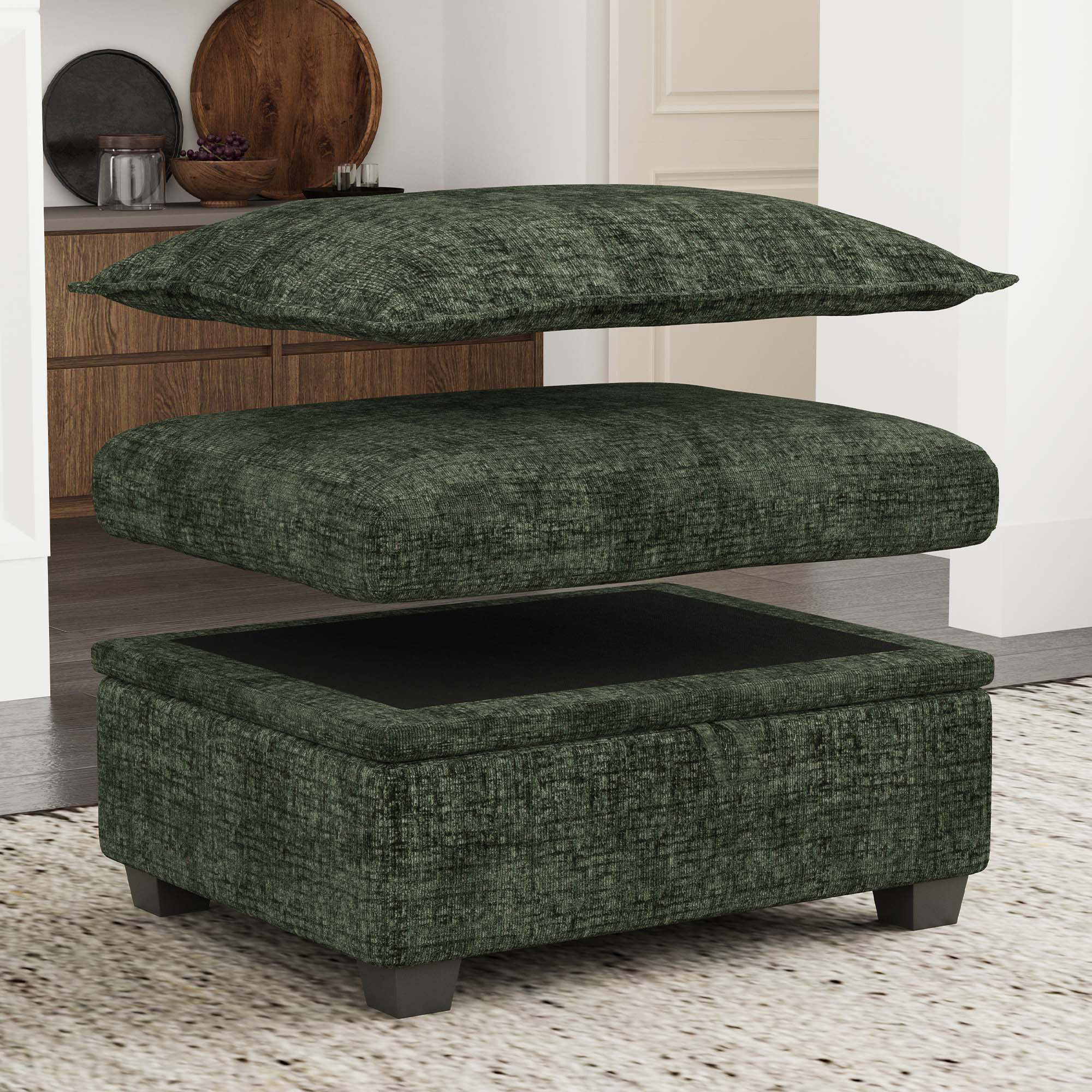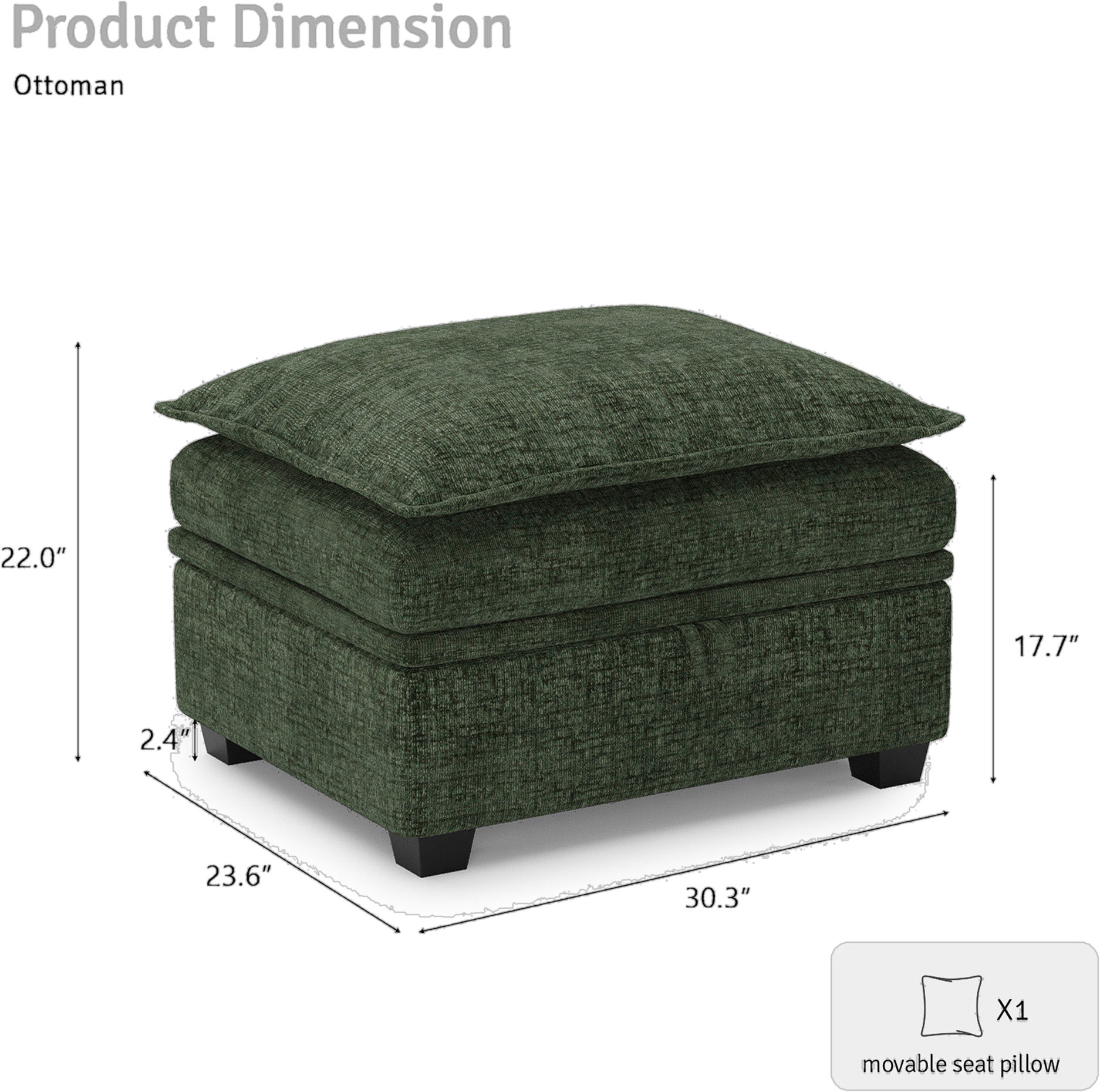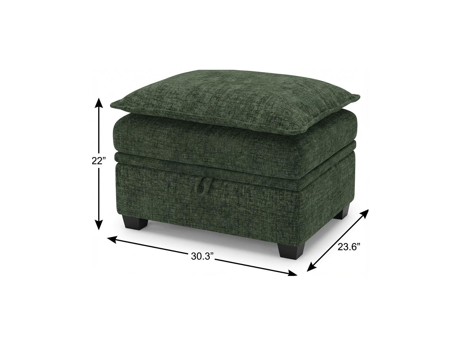 Get ready to relax with this 30-inch gray and black chenille storage ottoman. Designed to discretely add hidden storage to your room without sacrificing seating or foot rest space. Expertly upholstered with padding in a soft solid color chenille, this ottoman is as comfortable as it is good looking. Ottomans are multi-functional additions to your space that add fashion and practical value. 22.00-inch h x 30.30-inch w x 23.60-inch d.