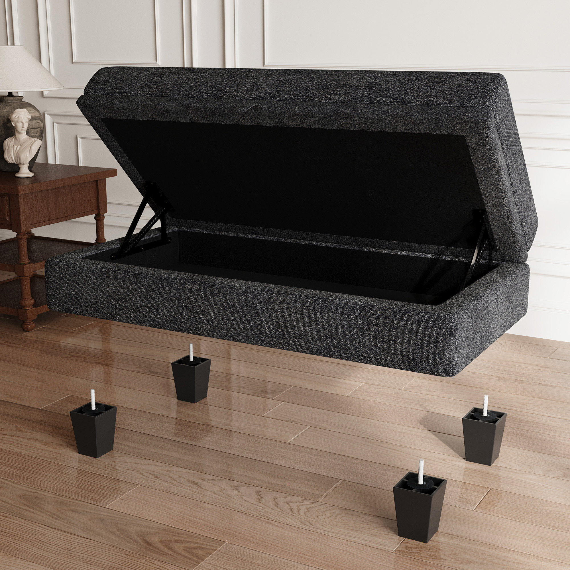 gray black chenille storage ottoman, black chenille storage ottoman, chenille storage ottoman, 46" gray black chenille storage, gray black chenille storage |