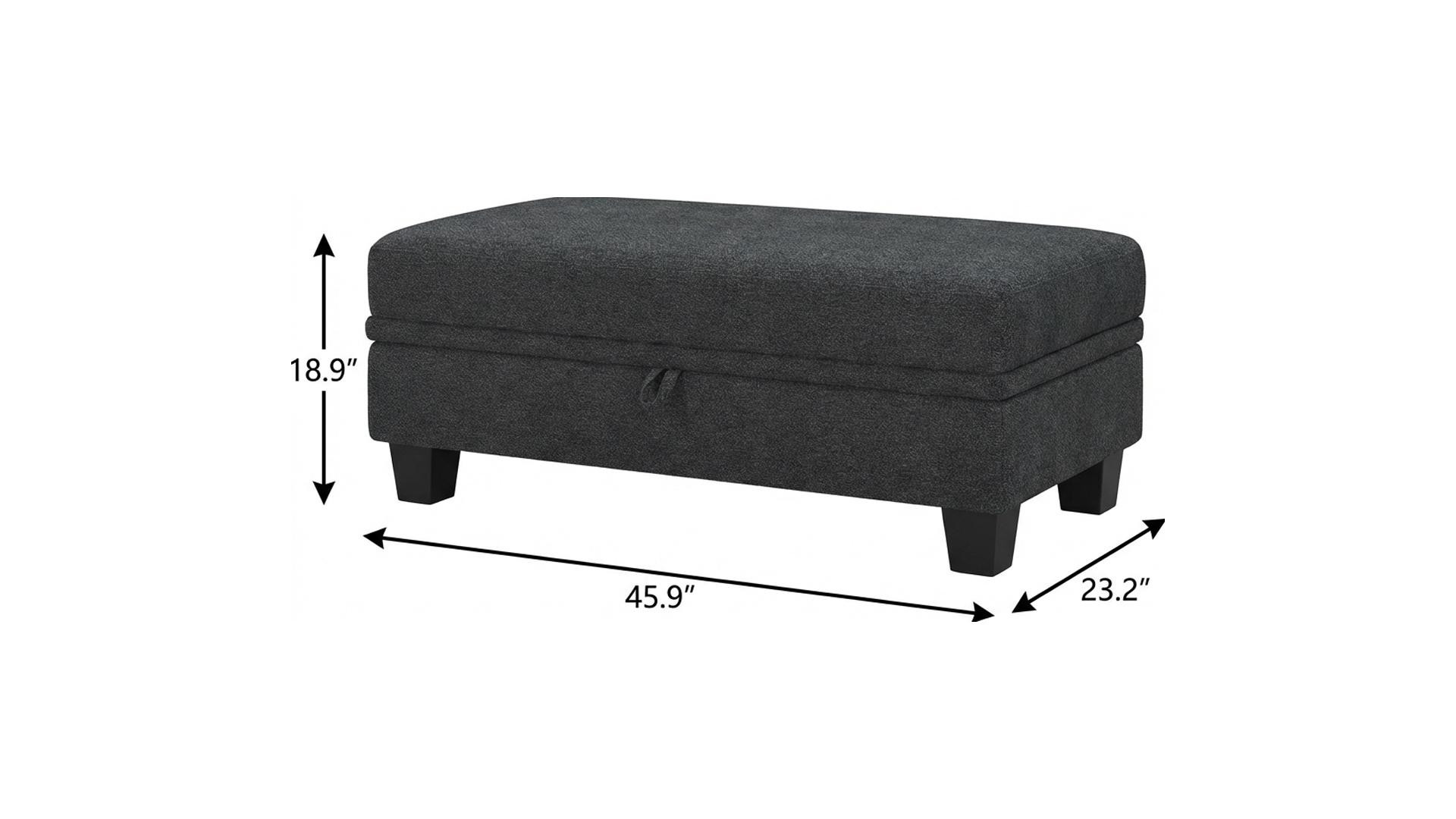 Get ready to relax with this 46-inch gray and black chenille storage ottoman. Designed to discretely add hidden storage to your room without sacrificing seating or foot rest space. Expertly upholstered with padding in a soft solid color chenille, this ottoman is as comfortable as it is good looking. Ottomans are multi-functional additions to your space that add fashion and practical value. 18.90-inch h x 45.90-inch w x 23.20-inch d.