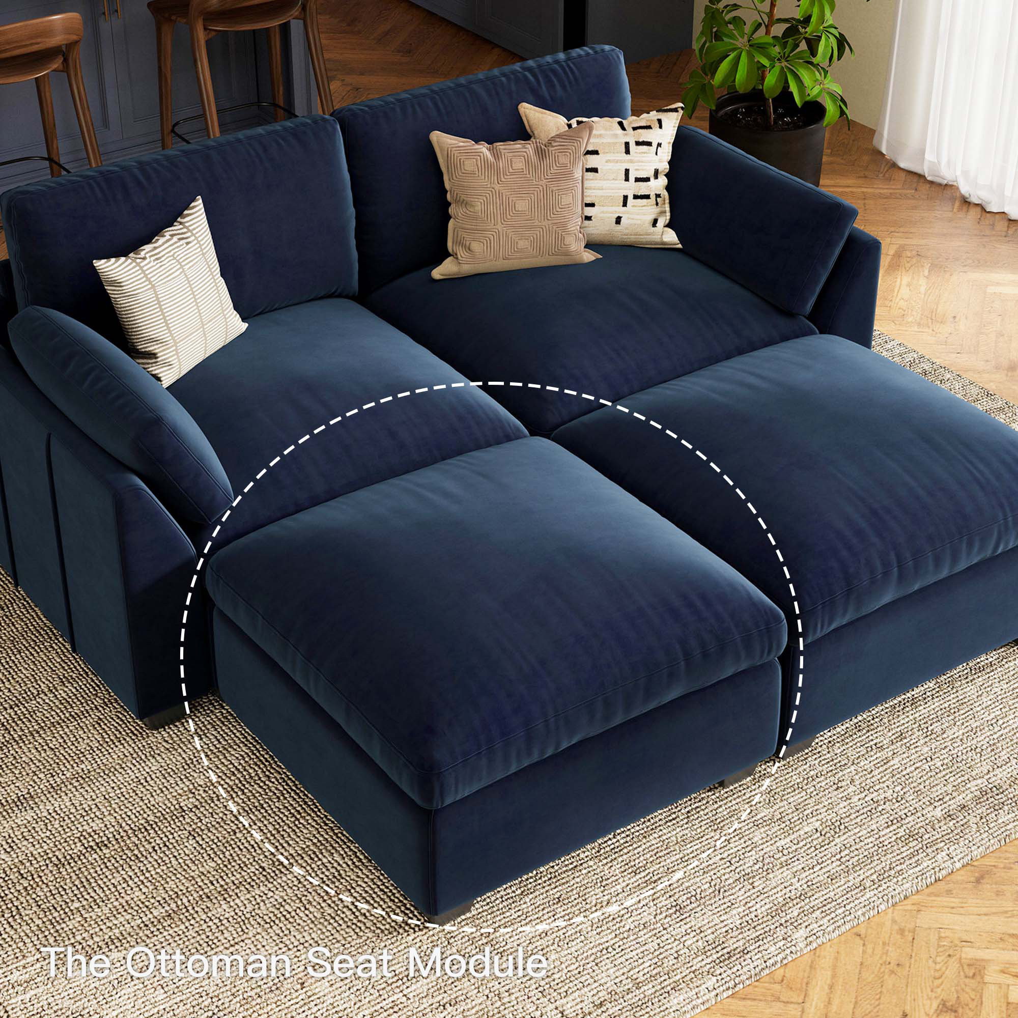 32" blue black velvet ottoman, blue black velvet ottoman, black velvet ottoman, 32" blue black velvet, blue black velvet |
