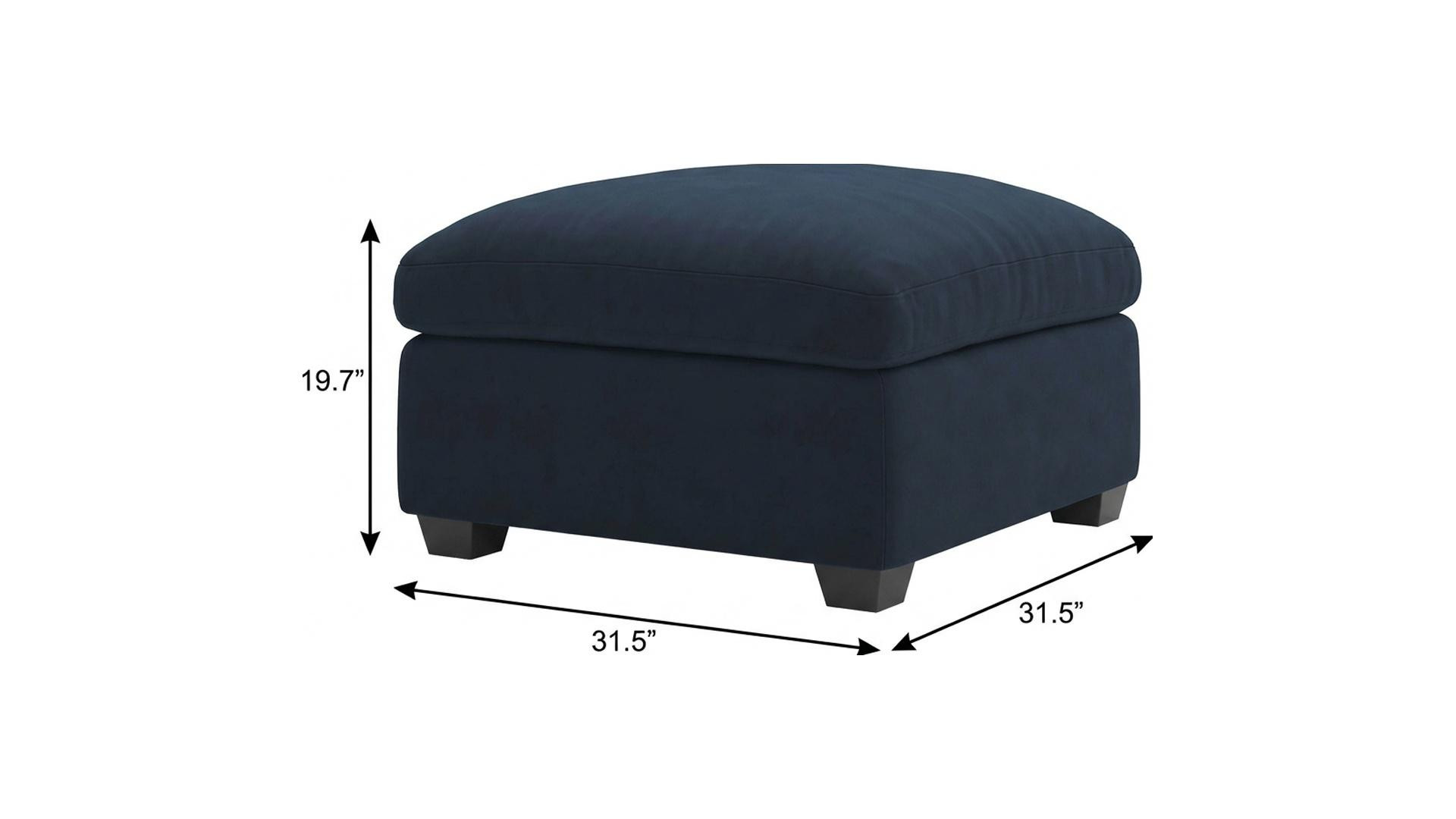 Optimize your space and add some charm to your room with the 32-inch blue and black velvet ottoman. Expertly upholstered with padding in a soft solid color velvet, this ottoman is as comfortable as it is good looking. Easy to blend into most any room, a ottoman is a way to add a good looking accent to your space that can also be practical and useful. 19.70-inch h x 31.50-inch w x 31.50-inch d.
