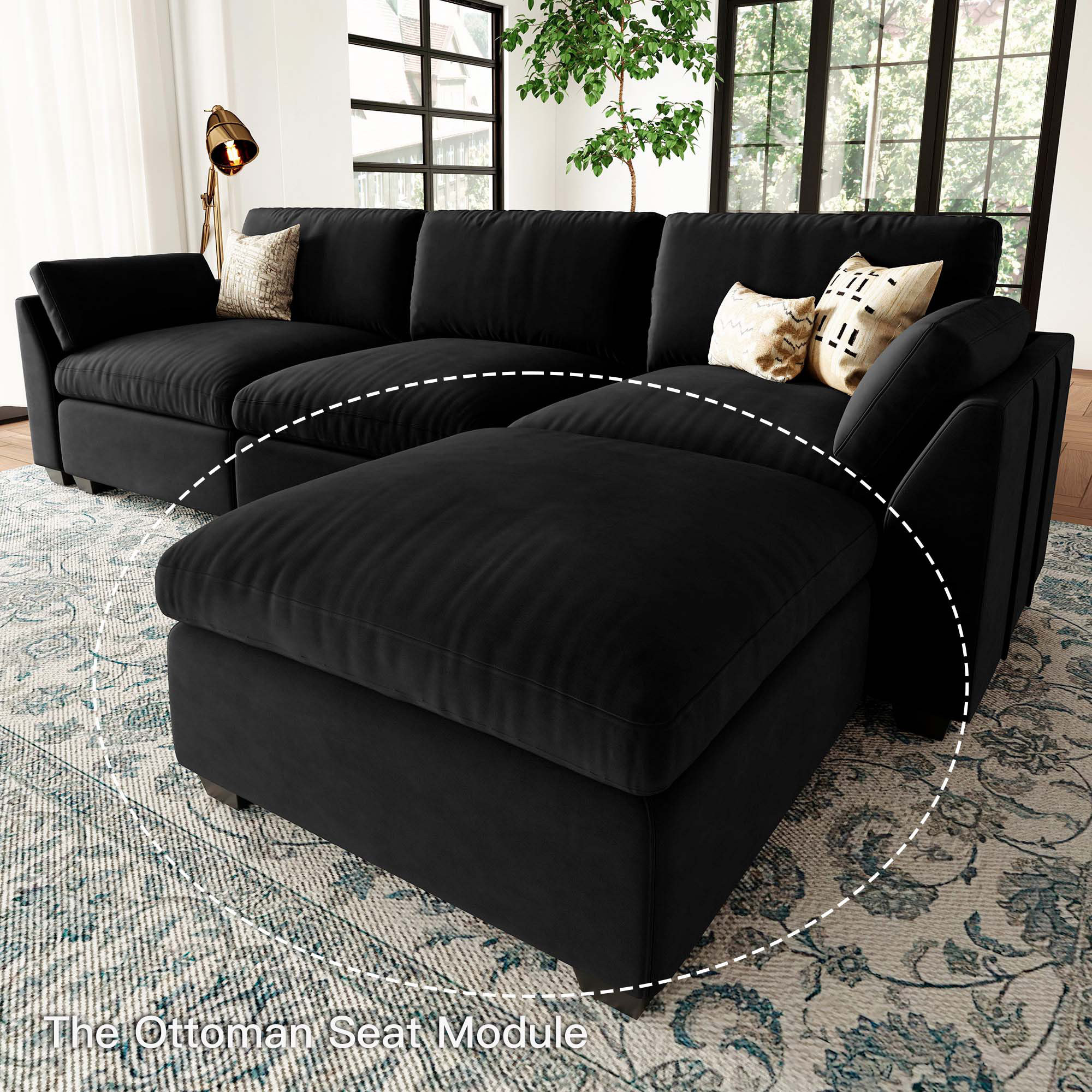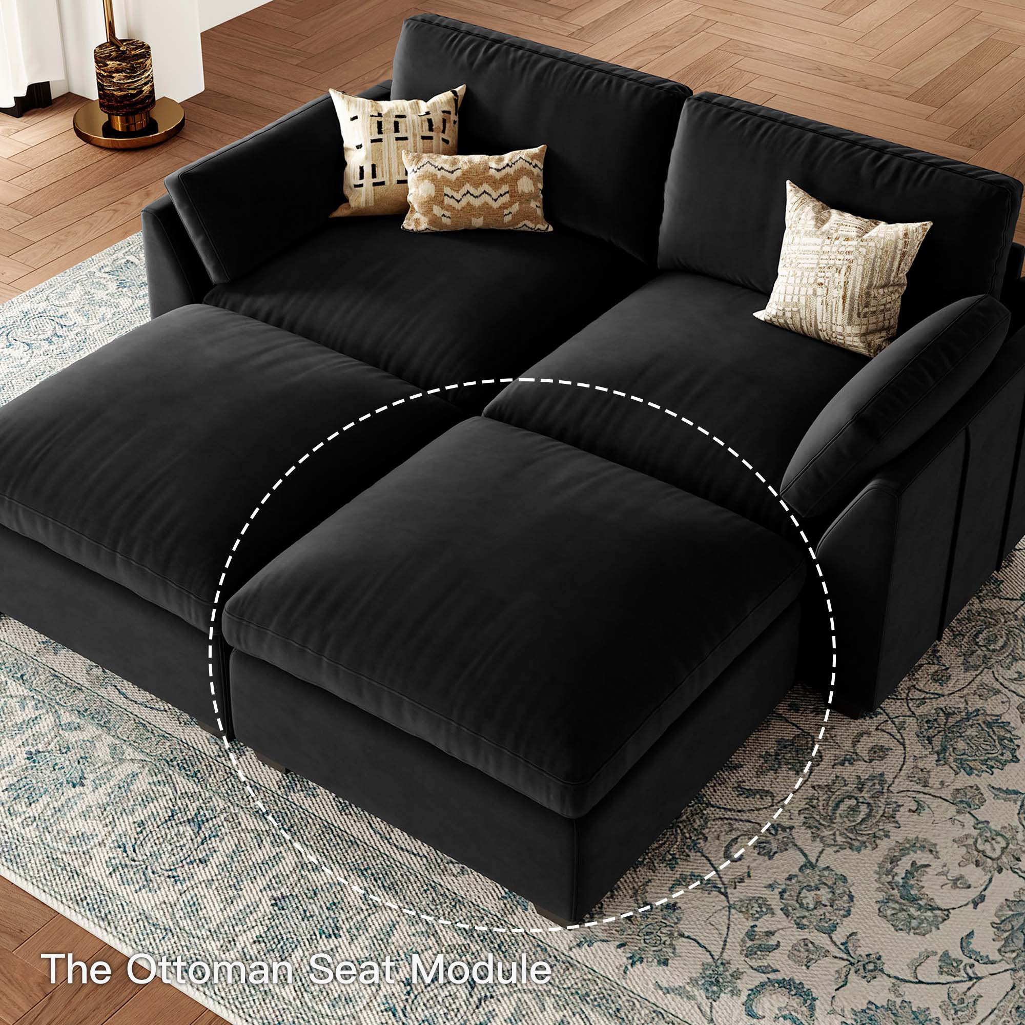 32" black velvet ottoman, black velvet ottoman, 32" black velvet |