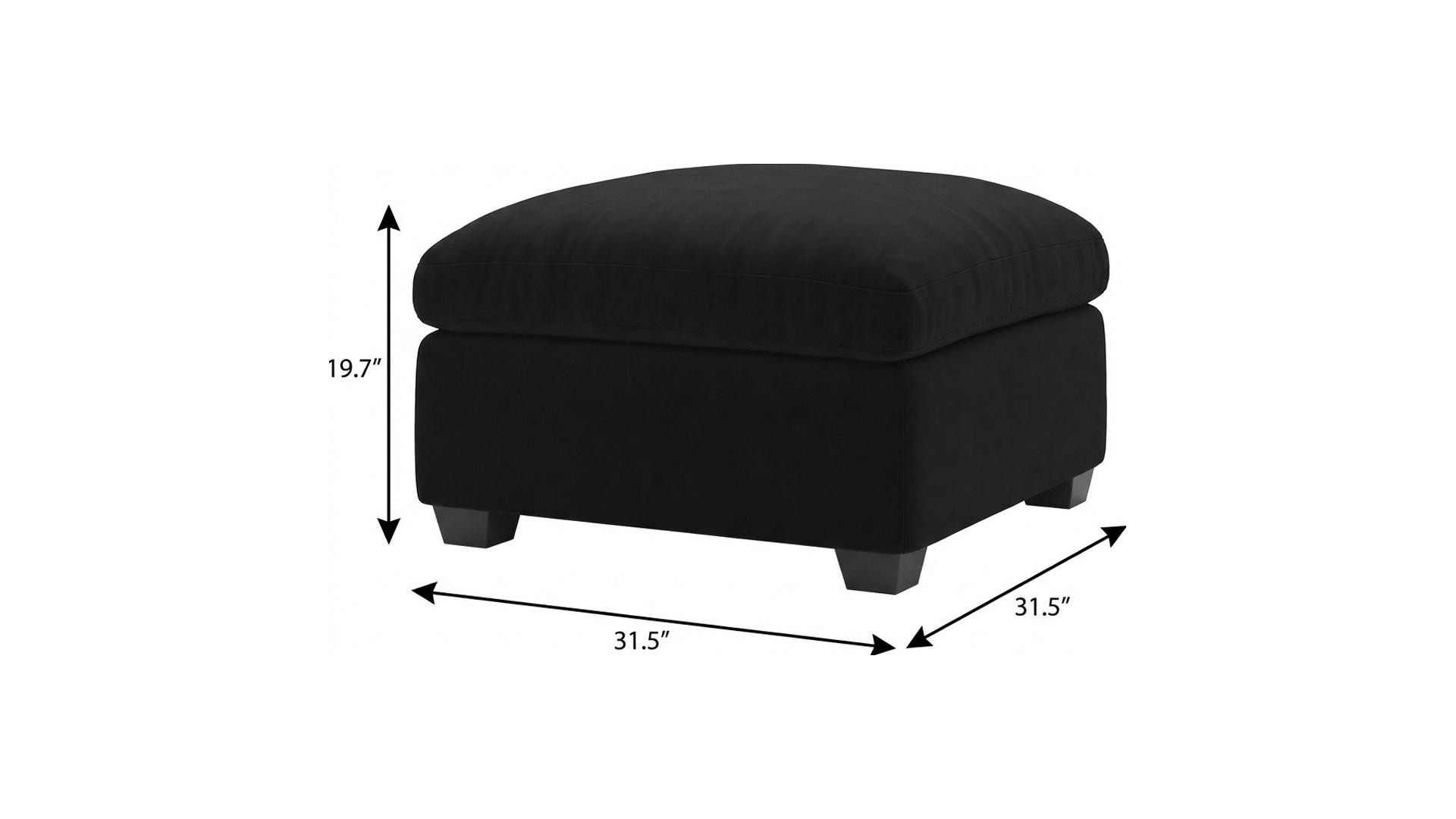 Add a good looking decorative accent to your space that is also practical for seating. A black monotone coloration gives this plastic and upholstery ottoman a fresh and updated look. Expertly upholstered with padding in a soft solid color velvet, this ottoman is as comfortable as it is good looking. Ottomans are multi-functional additions to your space that add fashion and practical value. 19.70-inch h x 31.50-inch w x 31.50-inch d.