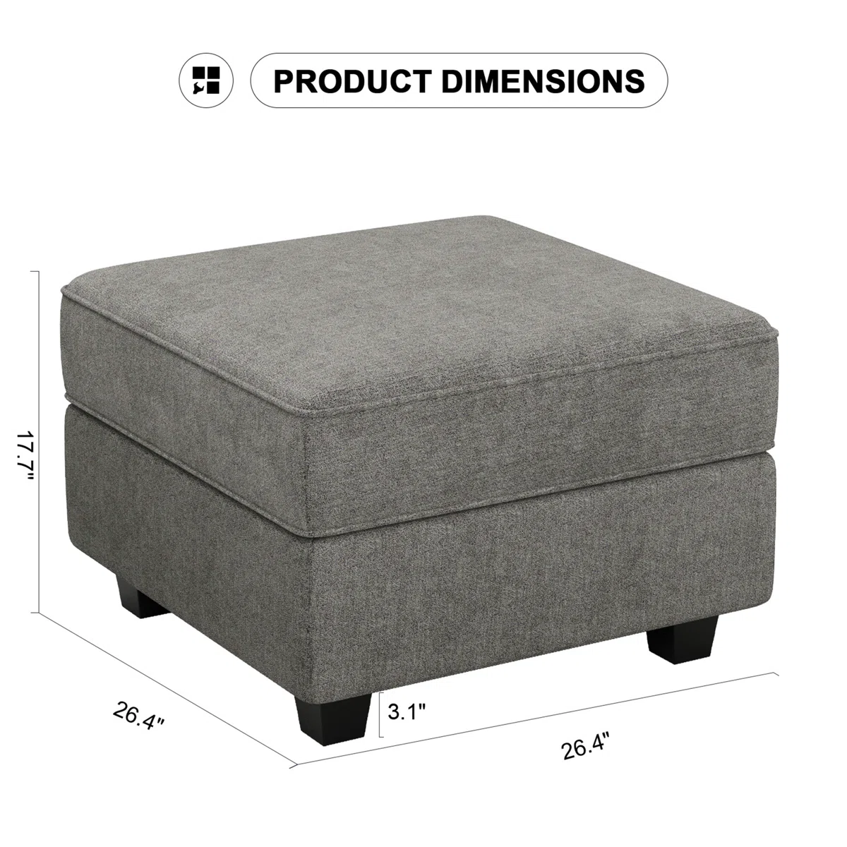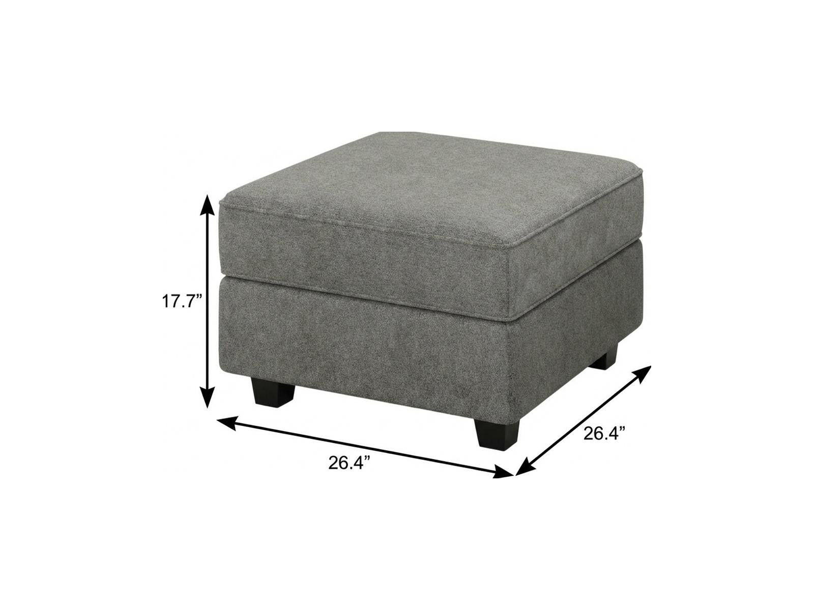 Get ready to relax with this 26-inch light gray and black polyester blend storage ottoman. Designed to discretely add hidden storage to your room without sacrificing seating or foot rest space. Expertly upholstered with padding in a soft solid color polyester blend, this ottoman is as comfortable as it is good looking. Ottomans are multi-functional additions to your space that add fashion and practical value. 17.70-inch h x 26.40-inch w x 26.40-inch d.