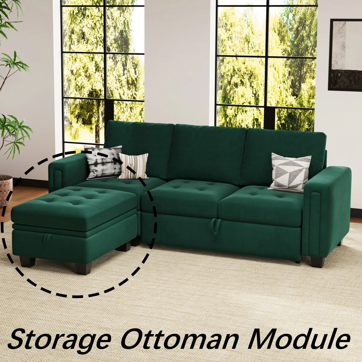 black velvet tufted storage ottoman, velvet tufted storage ottoman, tufted storage ottoman, green black velvet tufted storage, black velvet tufted storage |