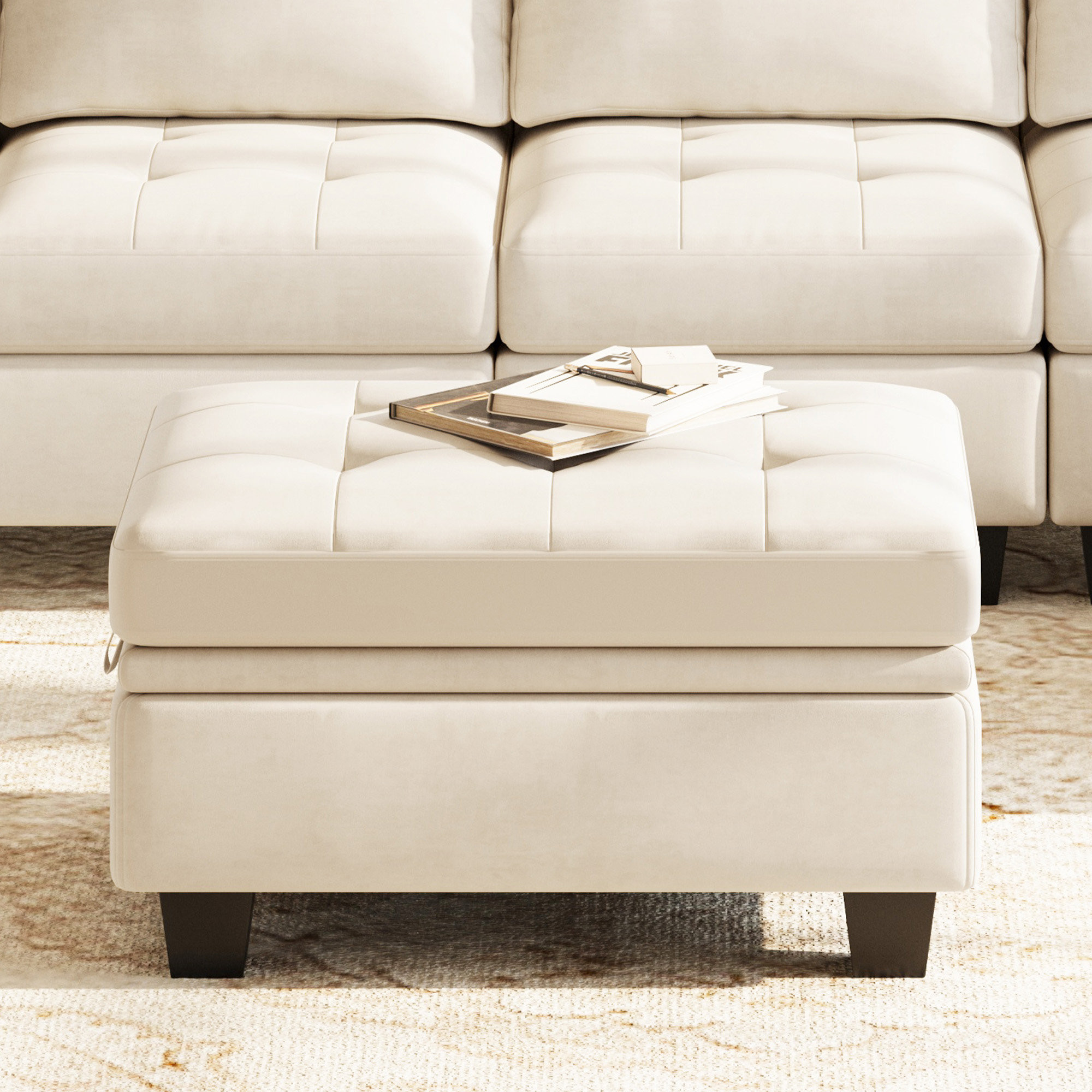 black velvet tufted storage ottoman, velvet tufted storage ottoman, tufted storage ottoman, beige black velvet tufted storage, 32" beige black velvet tufted |