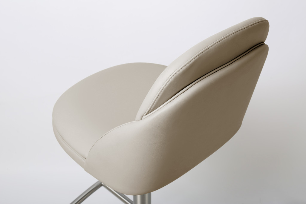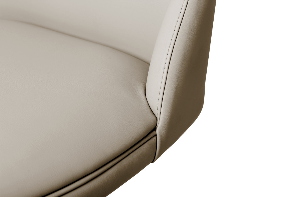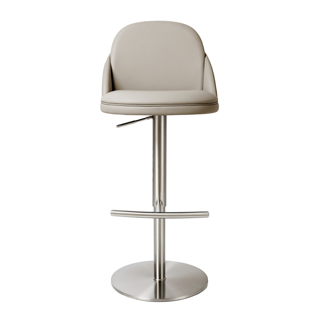 With this gray and silver faux leather and steel adjustable height swivel bar chair you can add design and extra seating to your space. A silver stainless steel frame is finished off with a gray faux leather seat that is the epitome of quality construction and design. A full back mixed with a round shaped seat design makes this chair both comfortable and fashionable. 45.00-inch h x 22.00-inch w x 21.00-inch d.