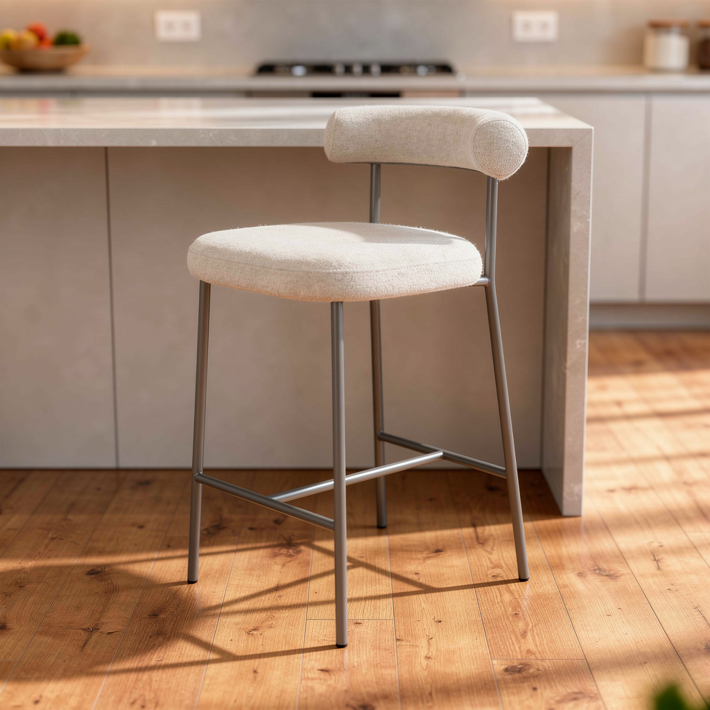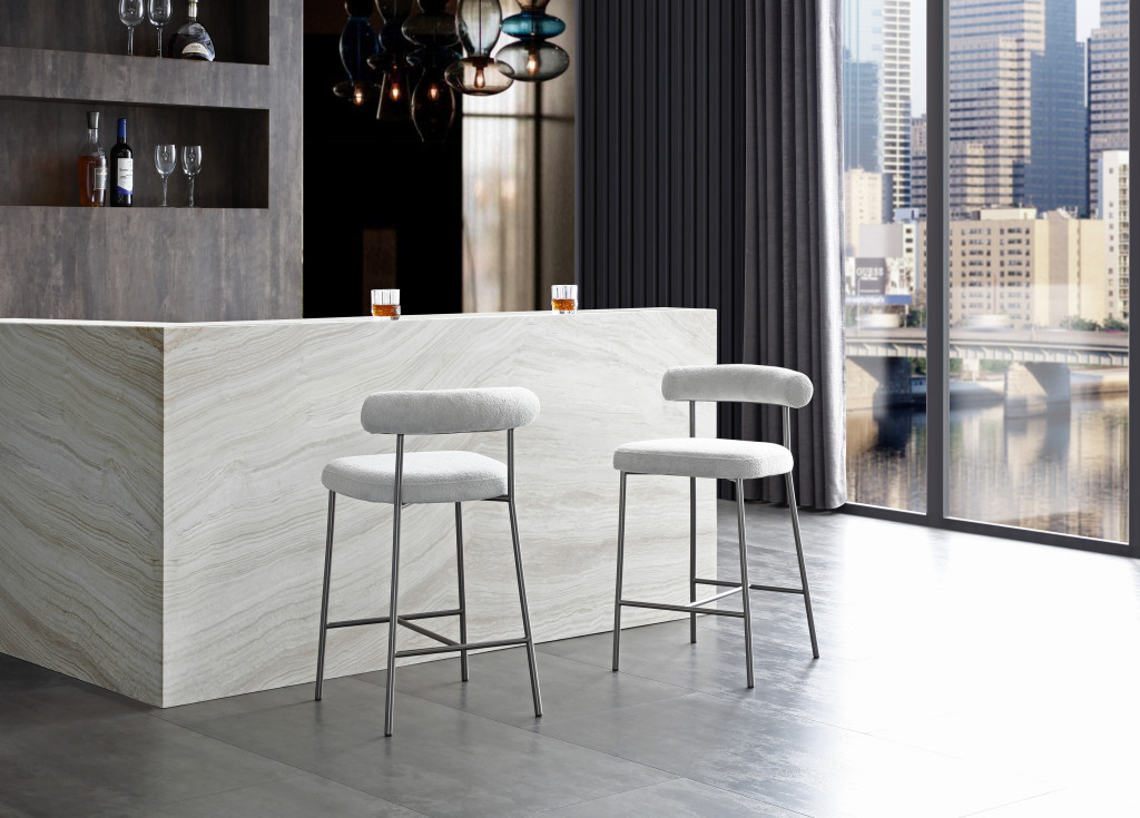 height bar chair, counter height bar chair, low counter height bar chair, gray dark gray fabric boucle, fabric boucle steel low counter |