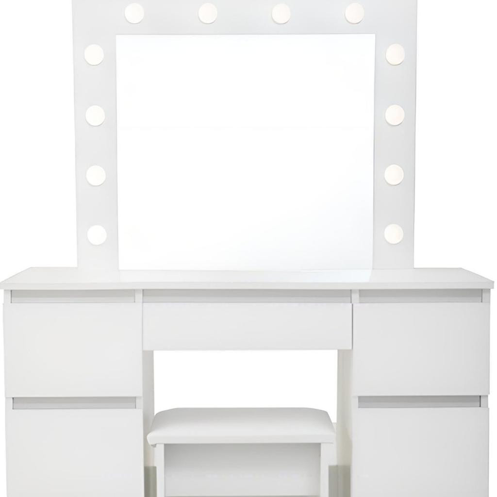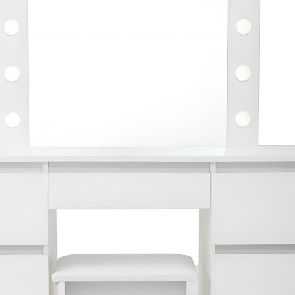 Make your room functional and visually enticing with this masterful 41-inch white wood lighted seven drawer dresser. This vertical standard dresser has a convenient and wide top area for your getting ready needs and supplies. Loaded with capacity, this piece is equipped with seven easy open drawers for practical and good looking clothing storage. The white coloration of this piece is neutral and will blend easily with most any decor. 55.10-inch h x 41.30-inch w x 15.70-inch d.