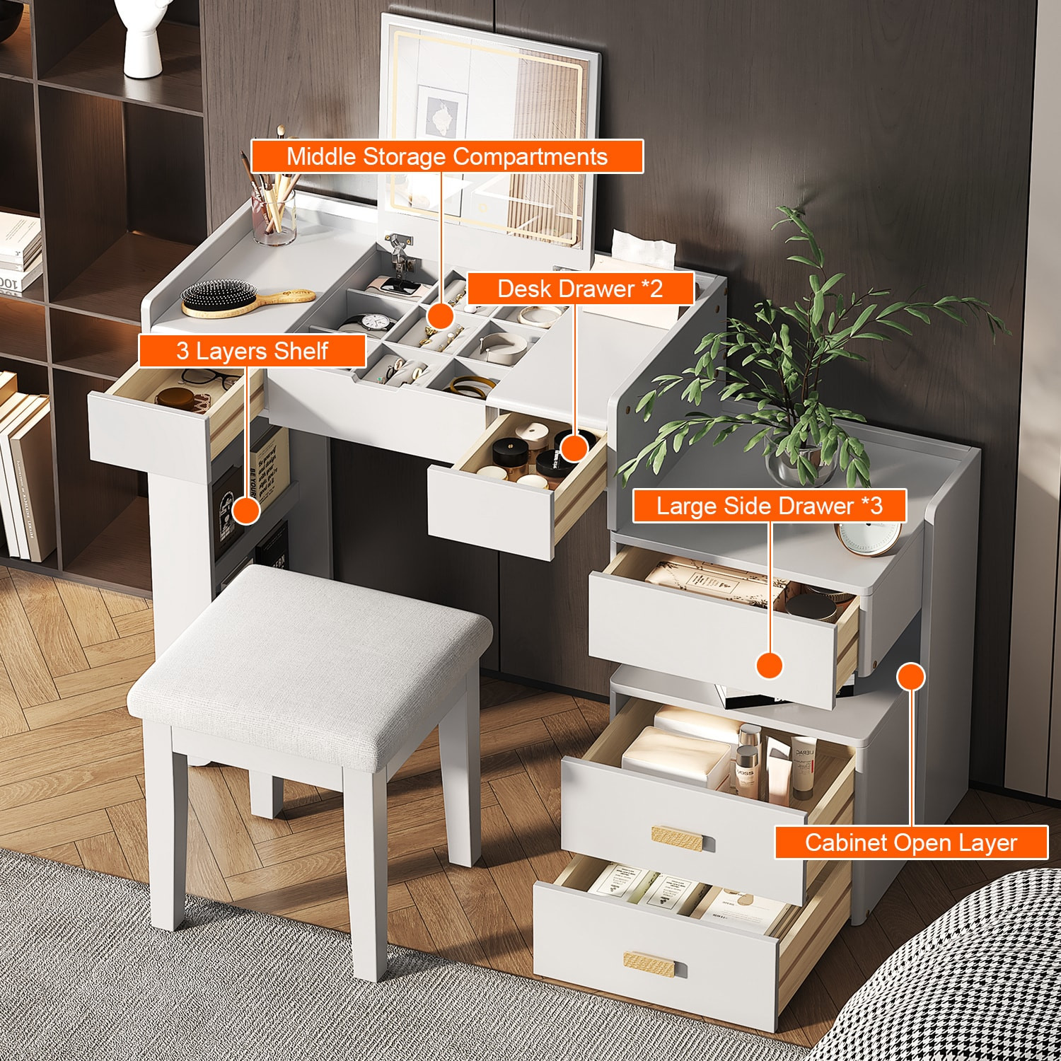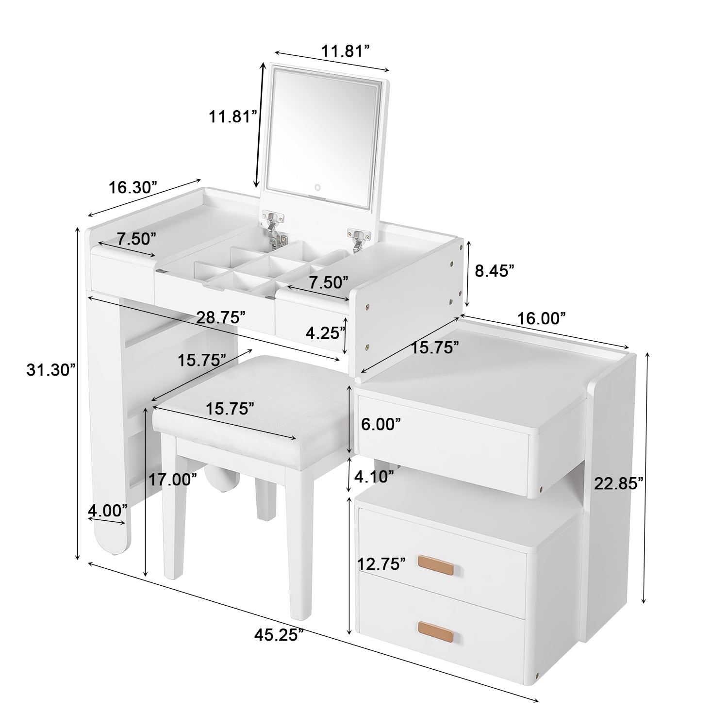 45" white drawer vanity table, white drawer vanity table, 45" white drawer vanity, drawer vanity table, white drawer vanity |