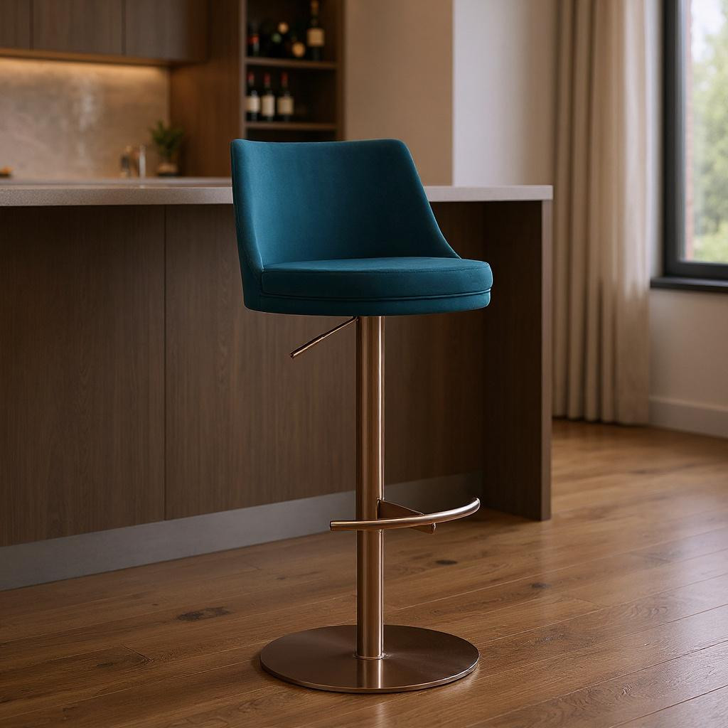 adjustable height swivel bar chair, height swivel bar chair, swivel bar chair, velvet steel low adjustable height, blue rose gold velvet |