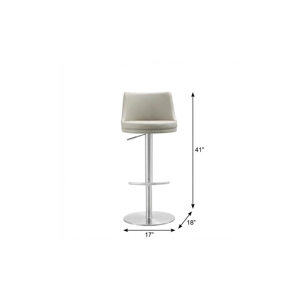 Bring a trendy bar vibe to your space, with this gray faux leather and steel low back adjustable height swivel bar chair. The base of this stool is made from stainless steel in a gray, that matches the faux leather, also in gray. The round shape of the seat combines with a low back to give this chair a comfortable and fashionable look. 41.00-inch h x 17.00-inch w x 18.00-inch d.