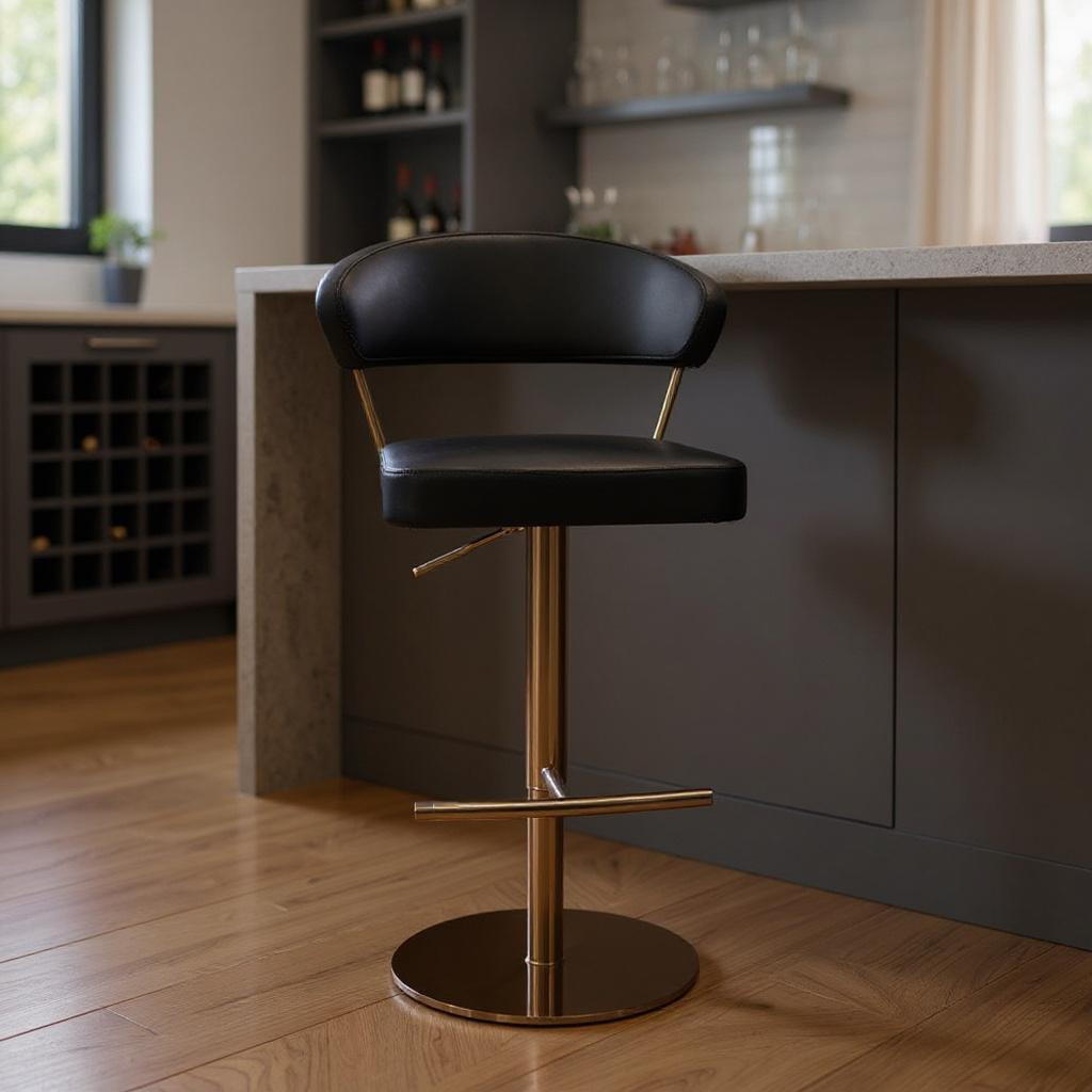 adjustable height swivel bar chair, faux leather steel low adjustable, height swivel bar chair, swivel bar chair, black rose gold faux leather |