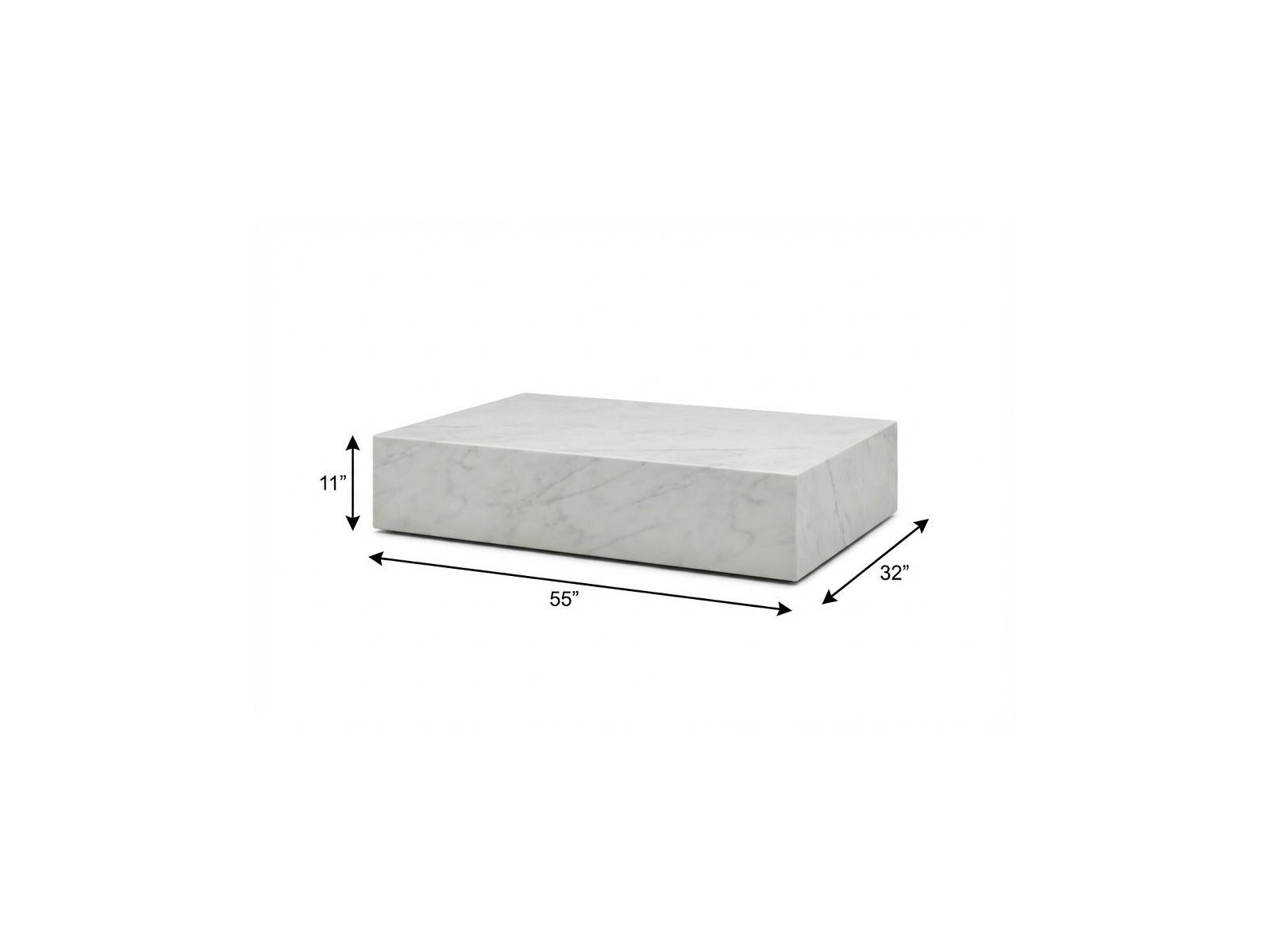 Add handsome, fashionable design to your living space with this 55-inch white genuine marble block coffee table. A white coloration runs throughout this good looking marble and genuine marble table. This rectangular table is an classic yet updated way to accent your room. Wheels give the table added versatility and mobility if needed. If you're looking for something that can fit into a living area, bedroom, or office, this coffee table is for you. 11.00-inch h x 55.00-inch w x 32.00-inch d.