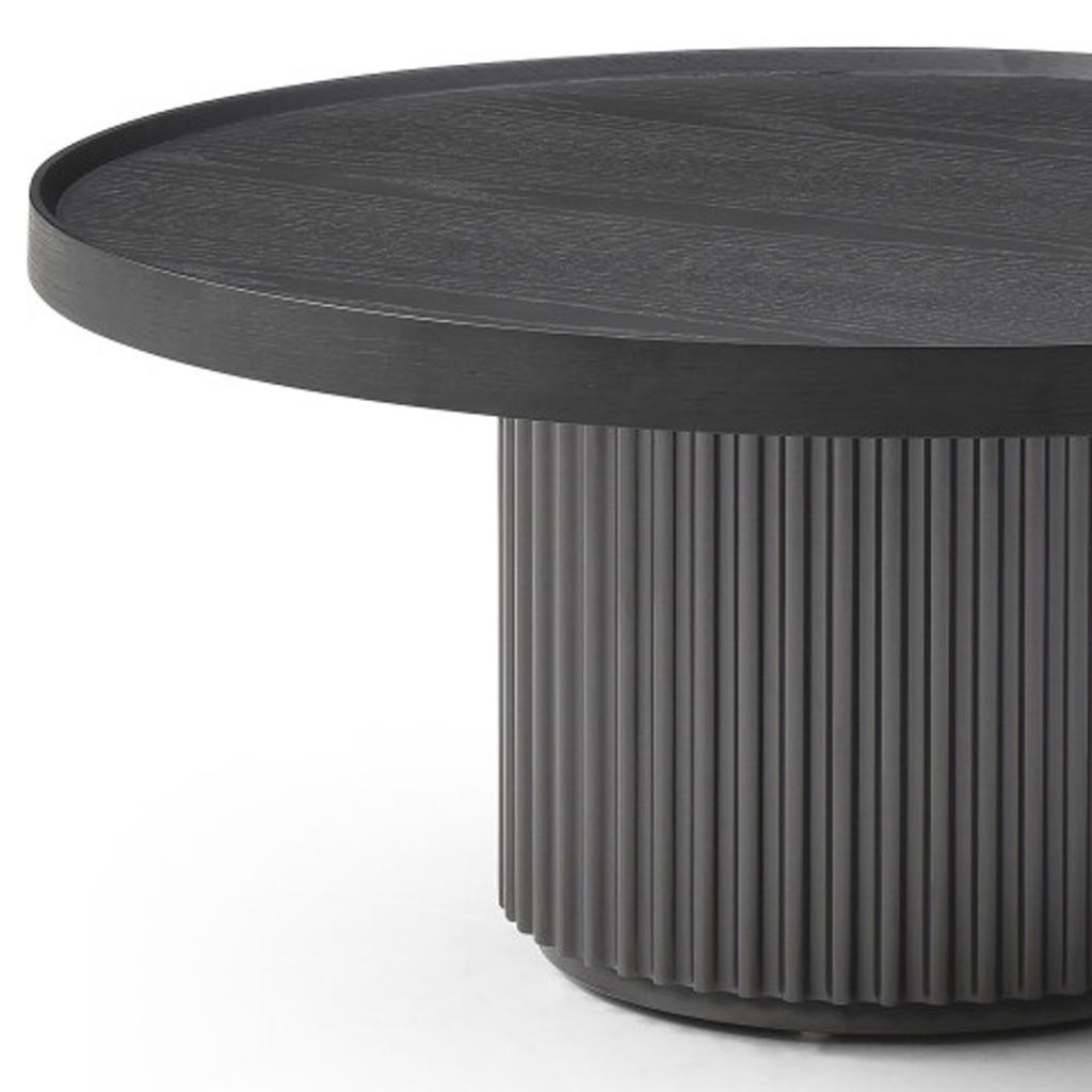 wood round pedestal coffee table, round pedestal coffee table, pedestal coffee table, wood wood round pedestal coffee, 32" dark gray solid wood |