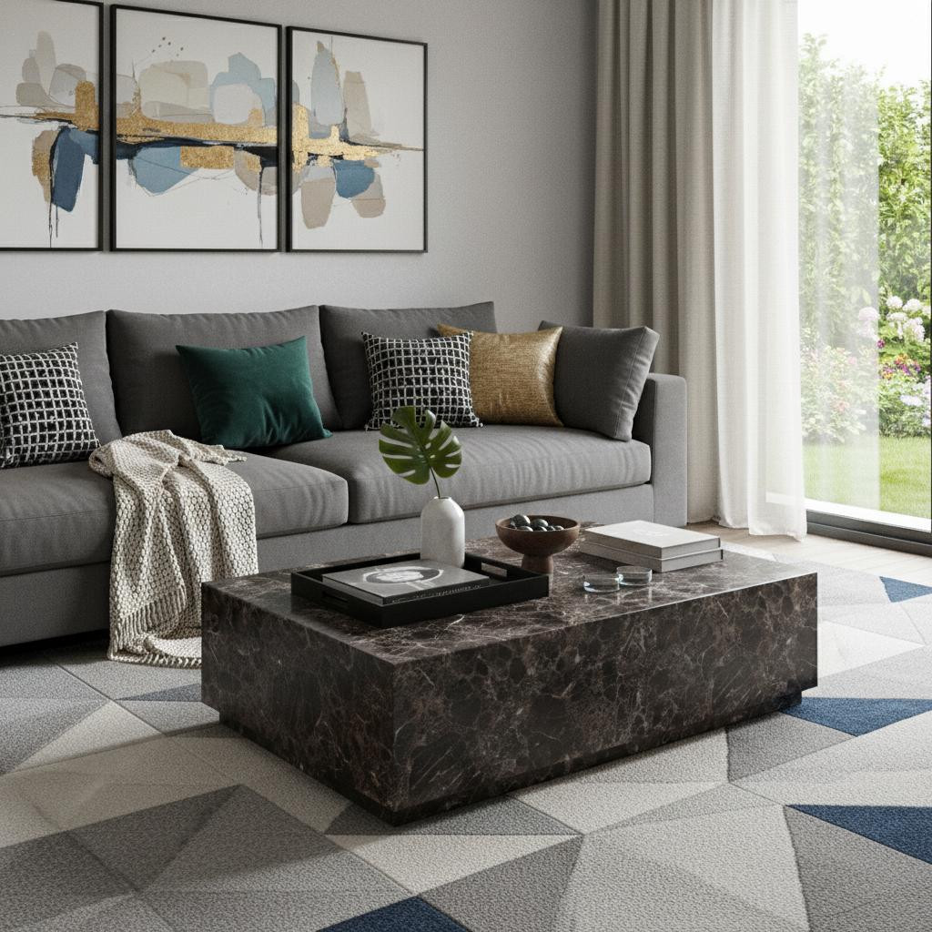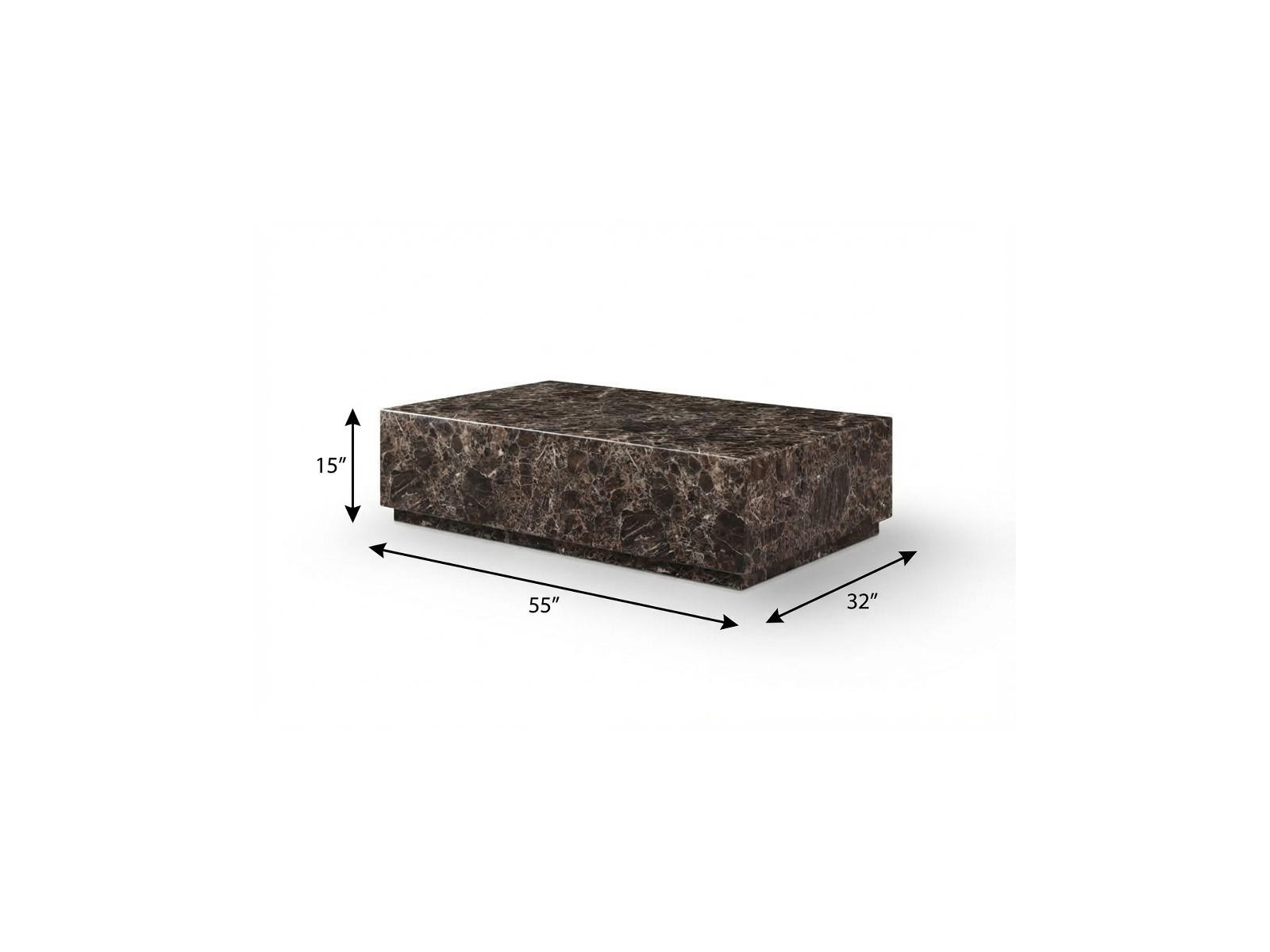Add handsome, fashionable design to your living space with this 55-inch brown genuine marble block coffee table. A brown coloration runs throughout this good looking marble and genuine marble table. This classic rectangular table will be a great accent in any room wheels give the table added versatility and mobility if needed. It has an attractive design that will definitely breathe some fresh air into your interior. 15.00-inch h x 55.00-inch w x 32.00-inch d.