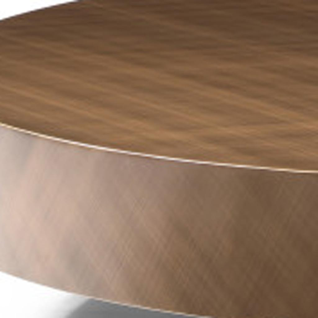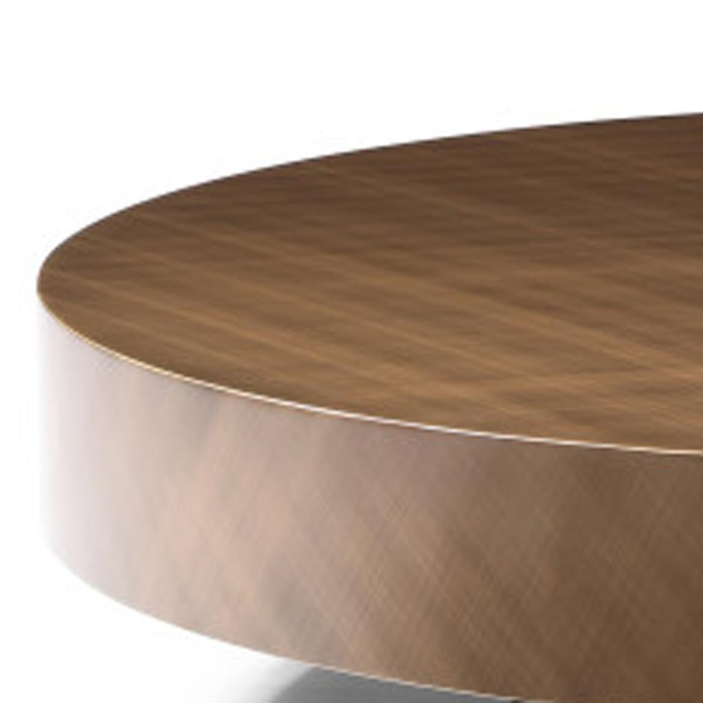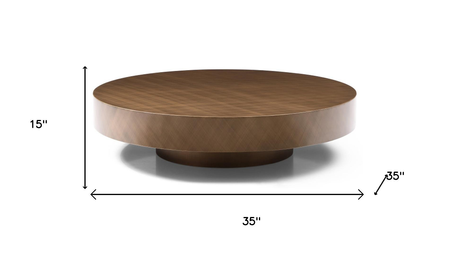 Optimize your space with the set of two bronze and black copper glass and steel round pedestal nested coffee tables that nest into each other easily and fashionably when not in use. A black and bronze coloration runs throughout this good looking copper and steel and copper and glass table. The bronze and smoky black copper and glass top of this table is a nice visual contrast to the high quality, black and bronze copper and steel of the base. Offering a nice color combination, the top of this copper and glass table is bronze and smoky black, while the base compliments it nicely in black and bronze. If you're looking for something that can fit into a living area, bedroom, or office, this coffee table is for you. 15.00-inch h x 35.00-inch w x 35.00-inch d.