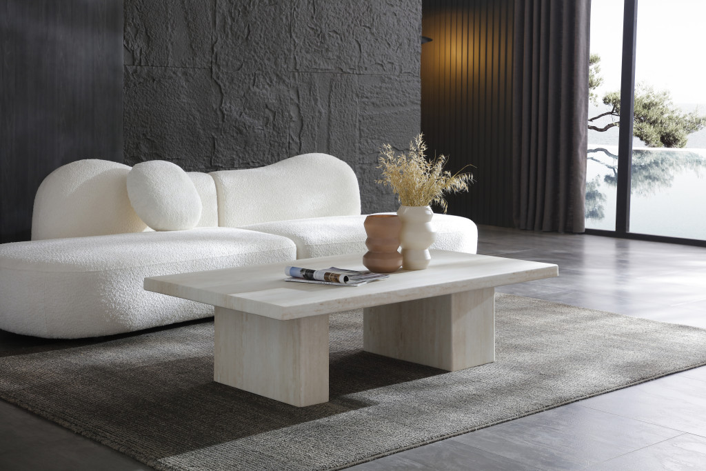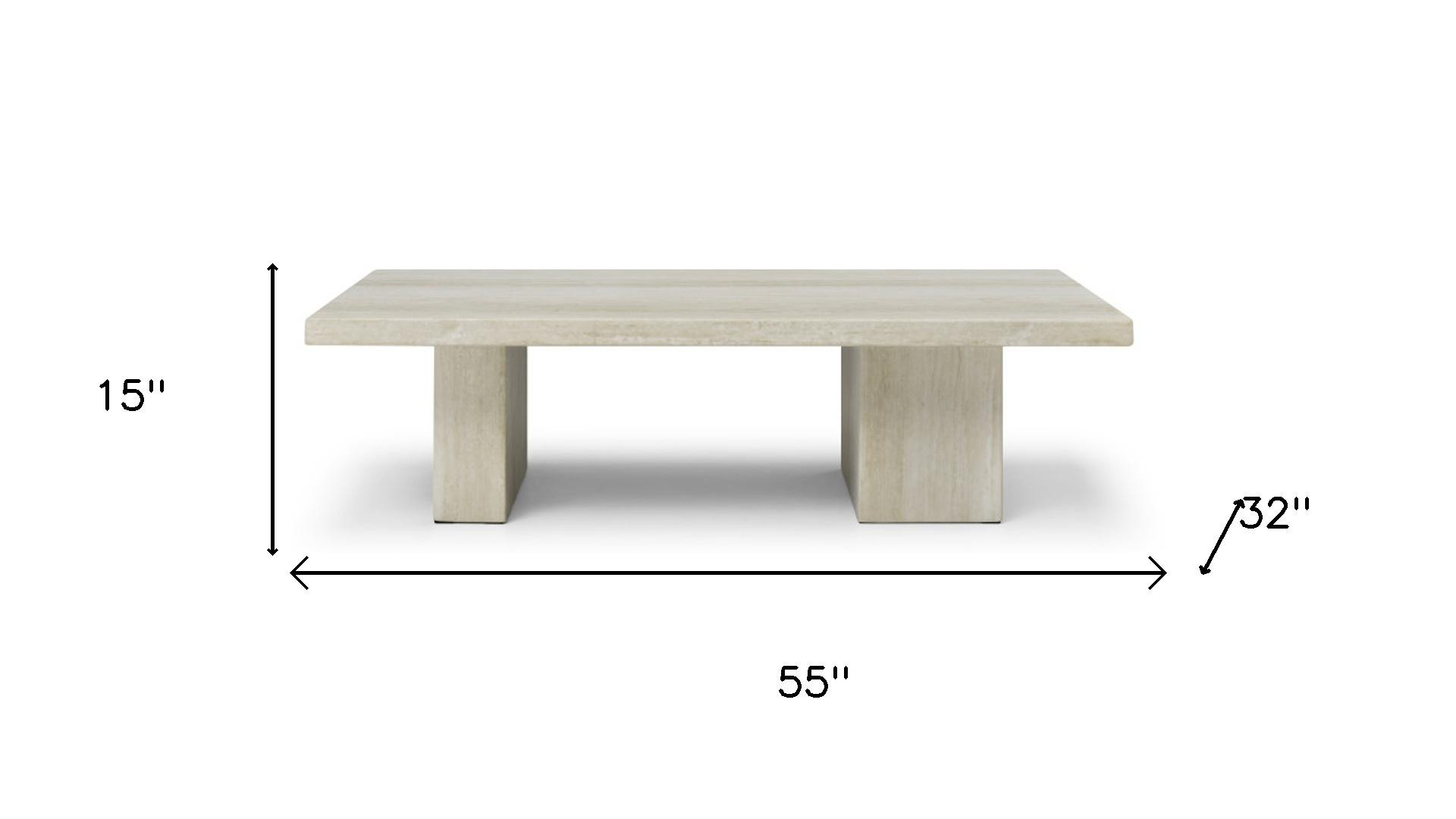 Give your living room, family room, or office the perfect anchor piece with this 55-inch beige marble double pedestal coffee table. A solid beige marble frame is finished off with a matching beige genuine marble top, giving this table a chic monotone look. This classic rectangular table will be a great accent in any room if you're looking for something that can fit into a living area, bedroom, or office, this coffee table is for you. 15.00-inch h x 55.00-inch w x 32.00-inch d.