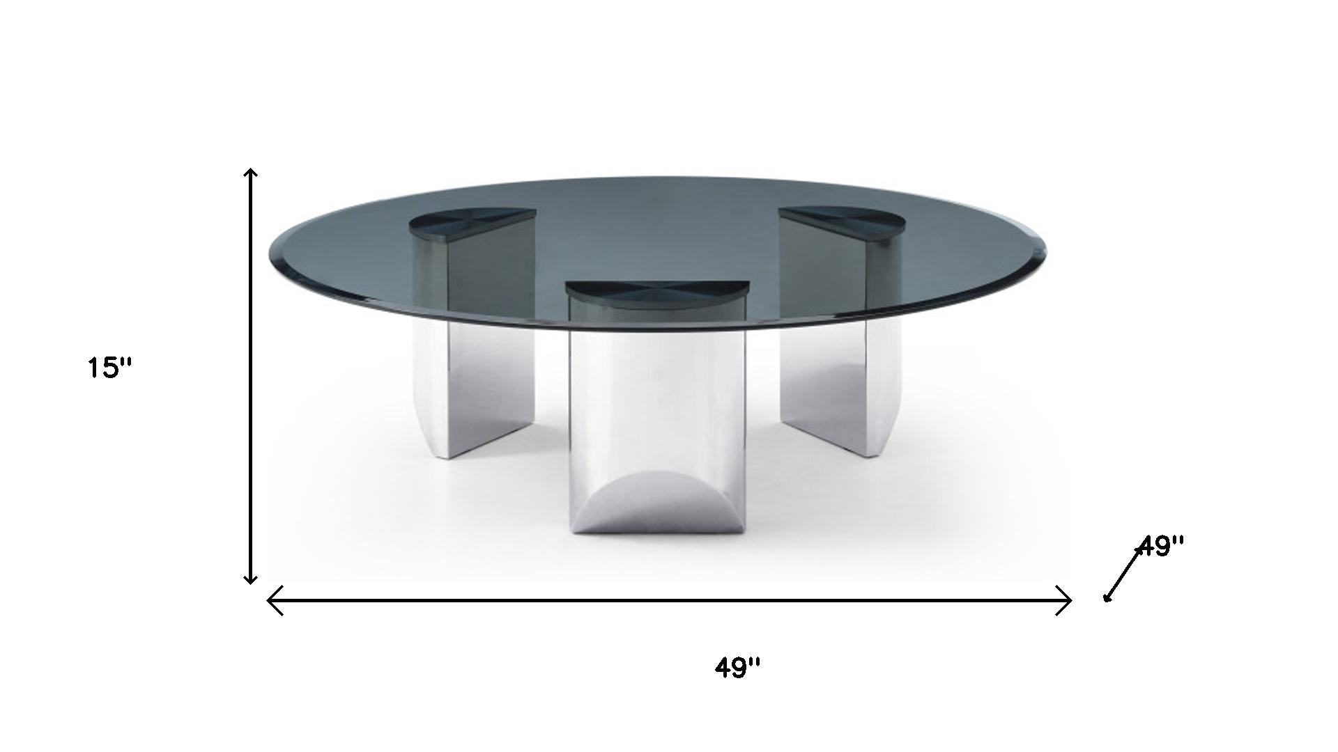 This stylish 49-inch black and silver mirrored glass and stainless steel round coffee table is sure to inspire compliments no matter where it sits. The base of this table is made from stainless steel in a silver color that creates a good looking visual contrast to the black glass tabletop. Reflective pieces of mirrored glass give this table a glamorous and unique look. It has an attractive design that will definitely breathe some fresh air into your interior. 15.00-inch h x 49.00-inch w x 49.00-inch d.