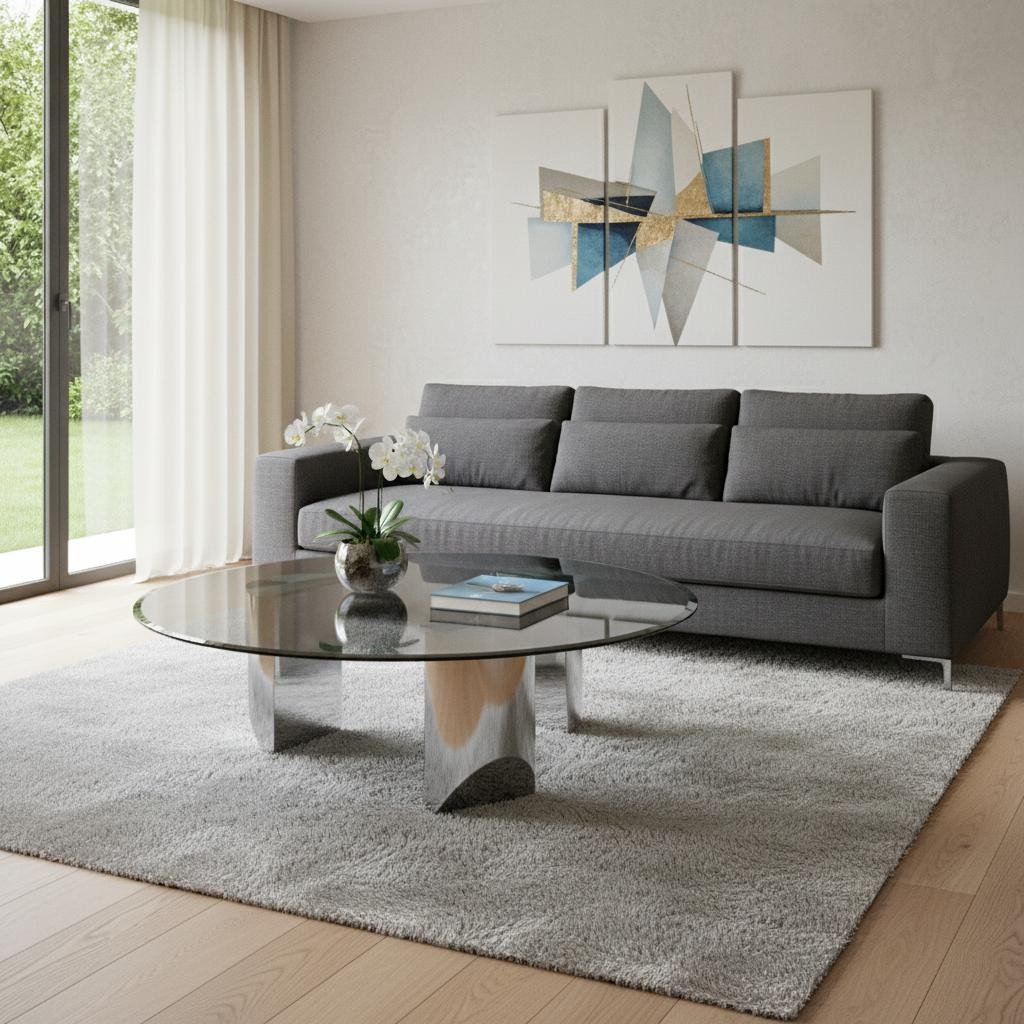 49" black silver mirrored glass, black silver mirrored glass stainless, black silver mirrored glass, mirrored glass stainless steel, stainless steel round coffee table |