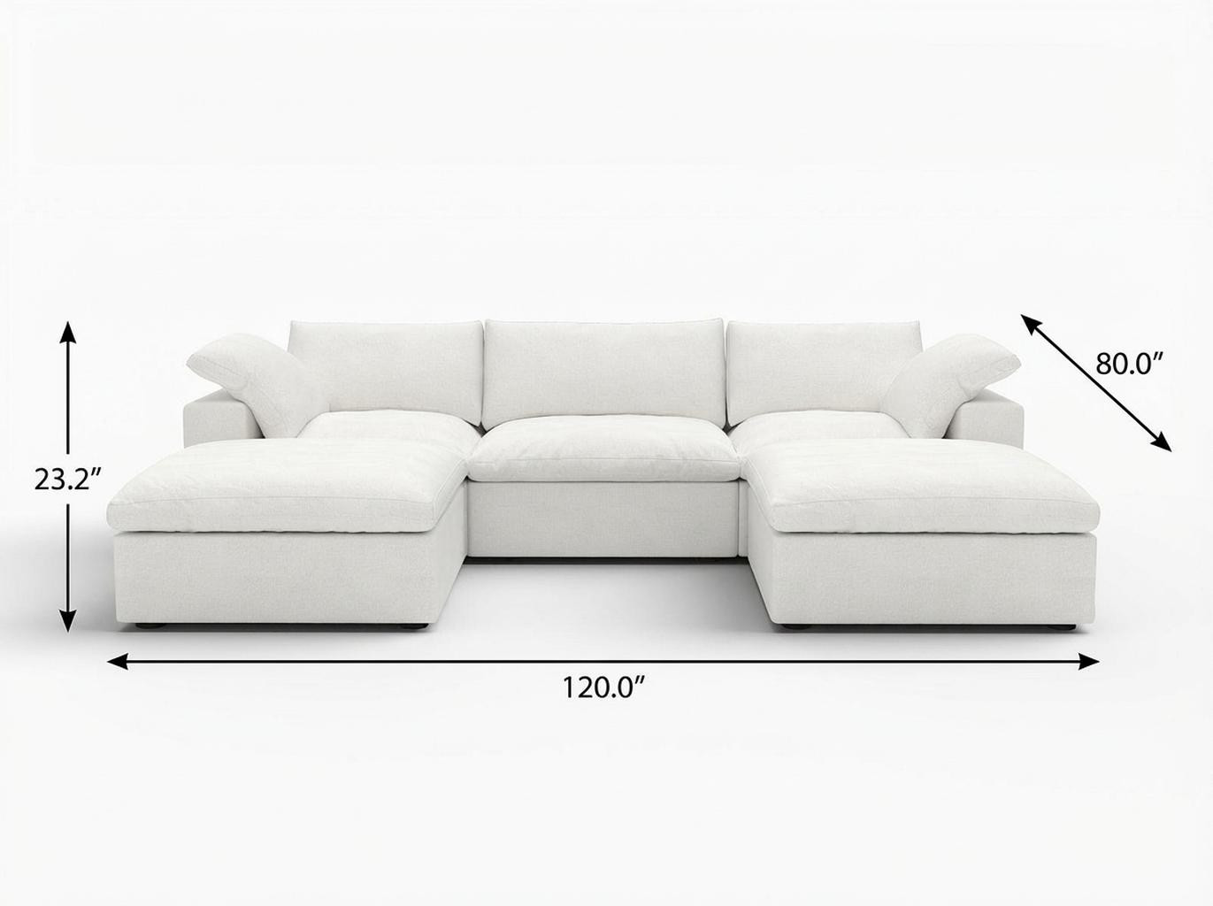 Designed for comfort and good looks, this 120-inch white linen blend modular sofa with ottoman and storage is a great option to anchor your space. Solid colors give you lots of decorative options and are easy to work into your decor scheme. Removable back cushions make this sofa easy to manage. Comes complete with a coordinating ottoman to rest your feet. The ottoman can also be used as additional seating option if needed. Track arms offer a comfy place to rest. Black solid wood legs effortlessly elevate the room and add a touch of contemporary design. Built to last, this sofa will be a great centerpiece for your room. 23.20-inch h x 120.00-inch w x 80.00-inch d.