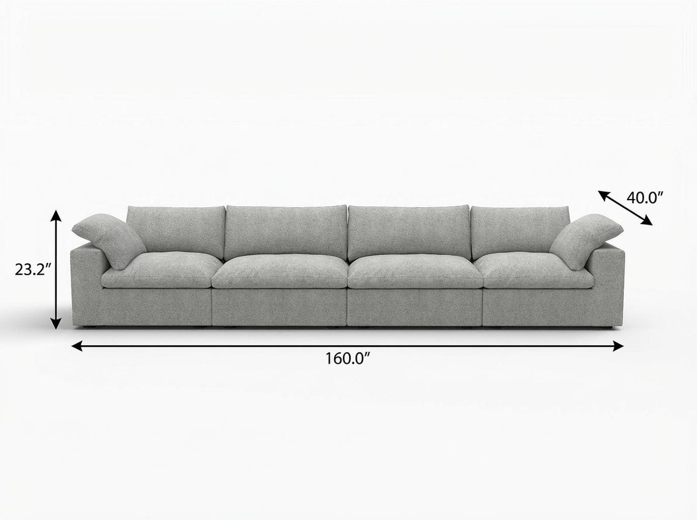 Add an air of fashion to your space with this fabulous 160-inch light gray linen blend modular sofa. Solid colors give you lots of decorative options and are easy to work into your decor scheme. Removable back cushions make this sofa easy to manage. Track arms offer a comfy place to rest. Black solid wood legs effortlessly elevate the room and add a touch of contemporary design. A great showpiece for your room, this sofa is a must have. 23.20-inch h x 160.00-inch w x 40.00-inch d.