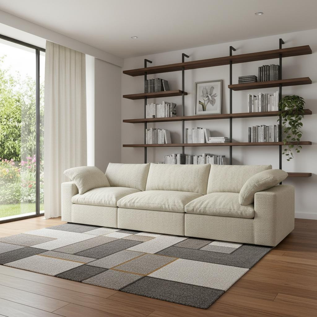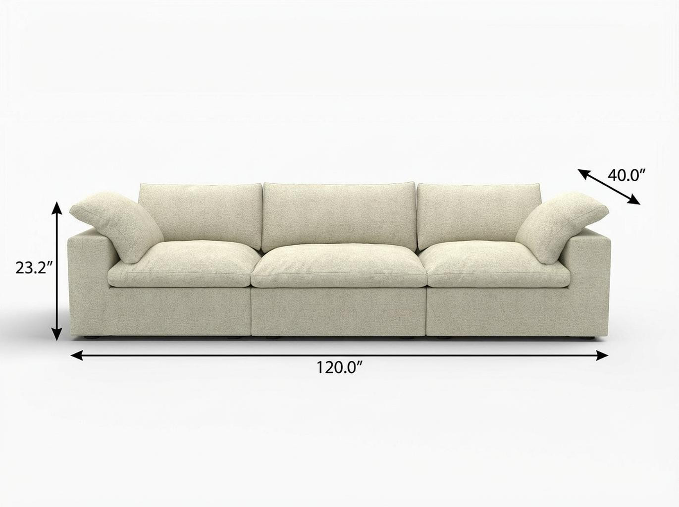 Designed for comfort and good looks, this khaki linen blend modular rectangular three piece sectional is a great option to anchor your space. Solid colors give you lots of decorative options and are easy to work into your decor scheme. Track arms offer a comfy place to rest. Black solid wood legs effortlessly elevate the room and add a touch of contemporary design. A great showpiece for your room, this sectional is a must have. 23.20-inch h x 120.00-inch w x 40.00-inch d.