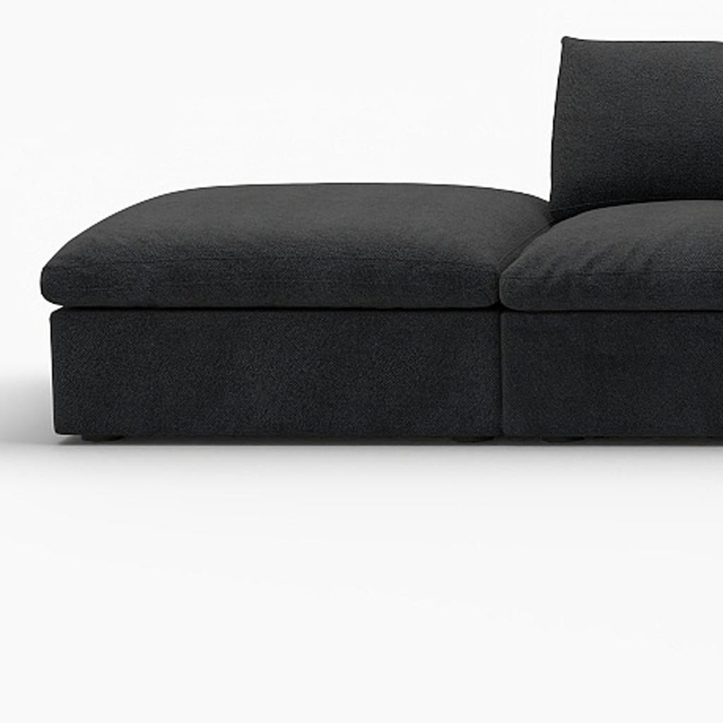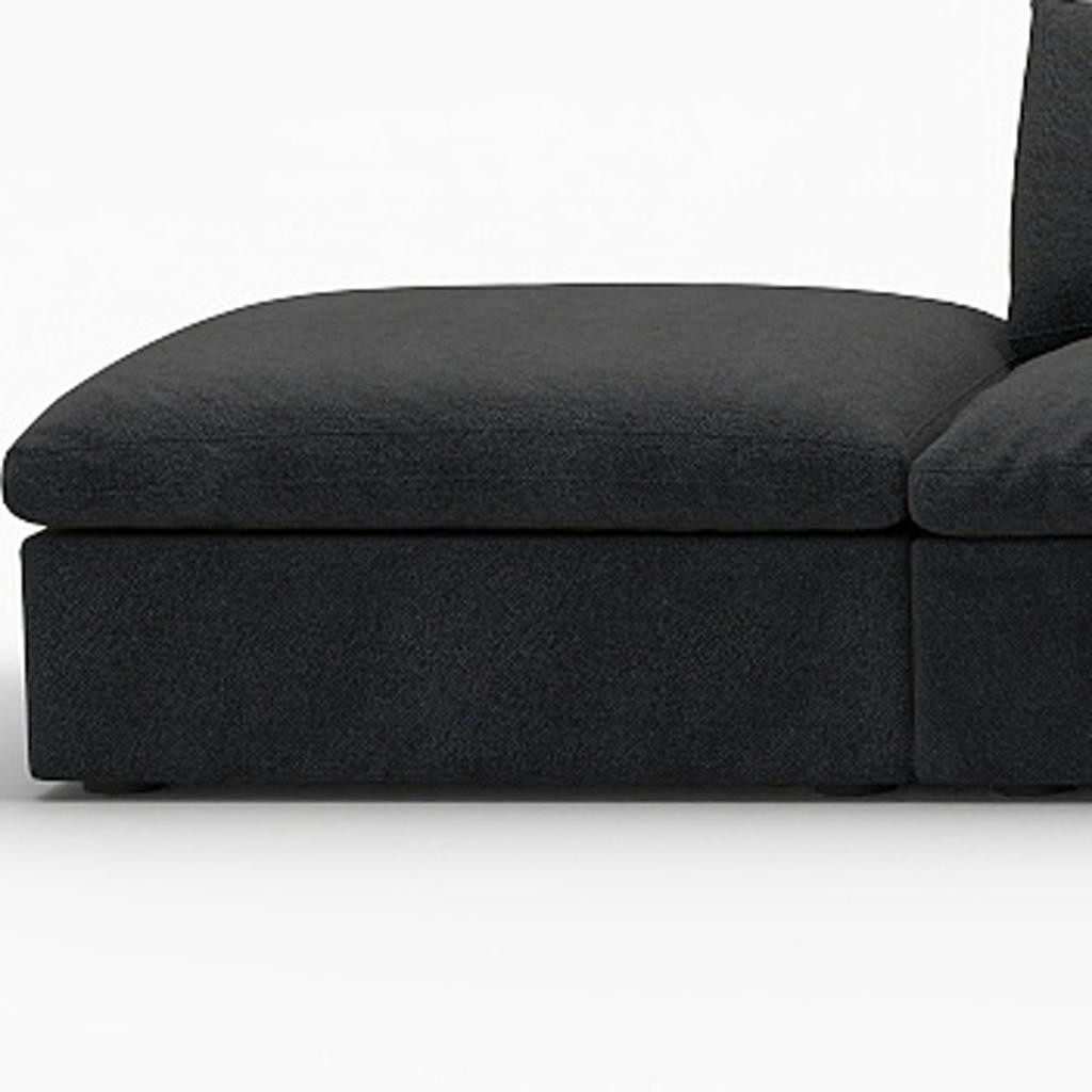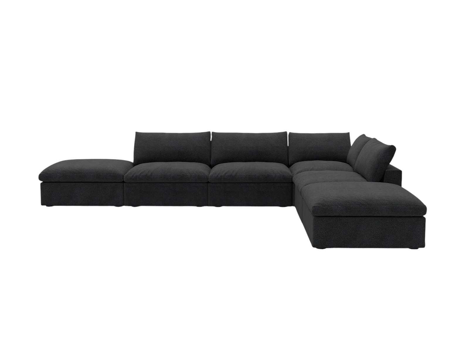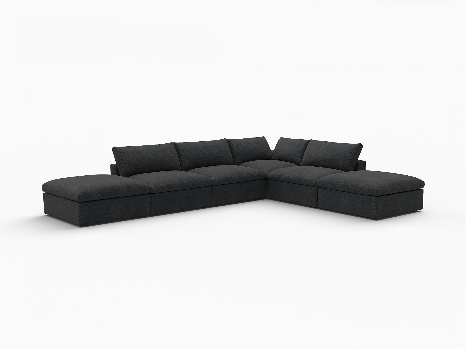 Designed for comfort and good looks, this black linen blend modular l shaped six piece corner sectional is a great option to anchor your space. Solid colors give you lots of decorative options and are easy to work into your decor scheme. Track arms offer a comfy place to rest. Black solid wood legs effortlessly elevate the room and add a touch of contemporary design. Great for everyday lounging and for entertaining, sectionals are an ideal way to seat multiple people. 23.20-inch h x 160.00-inch w x 120.00-inch d.