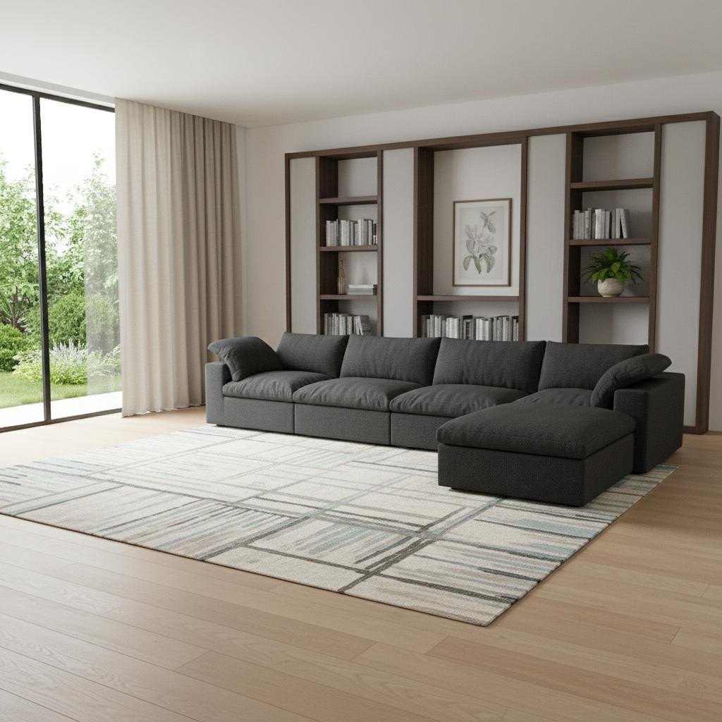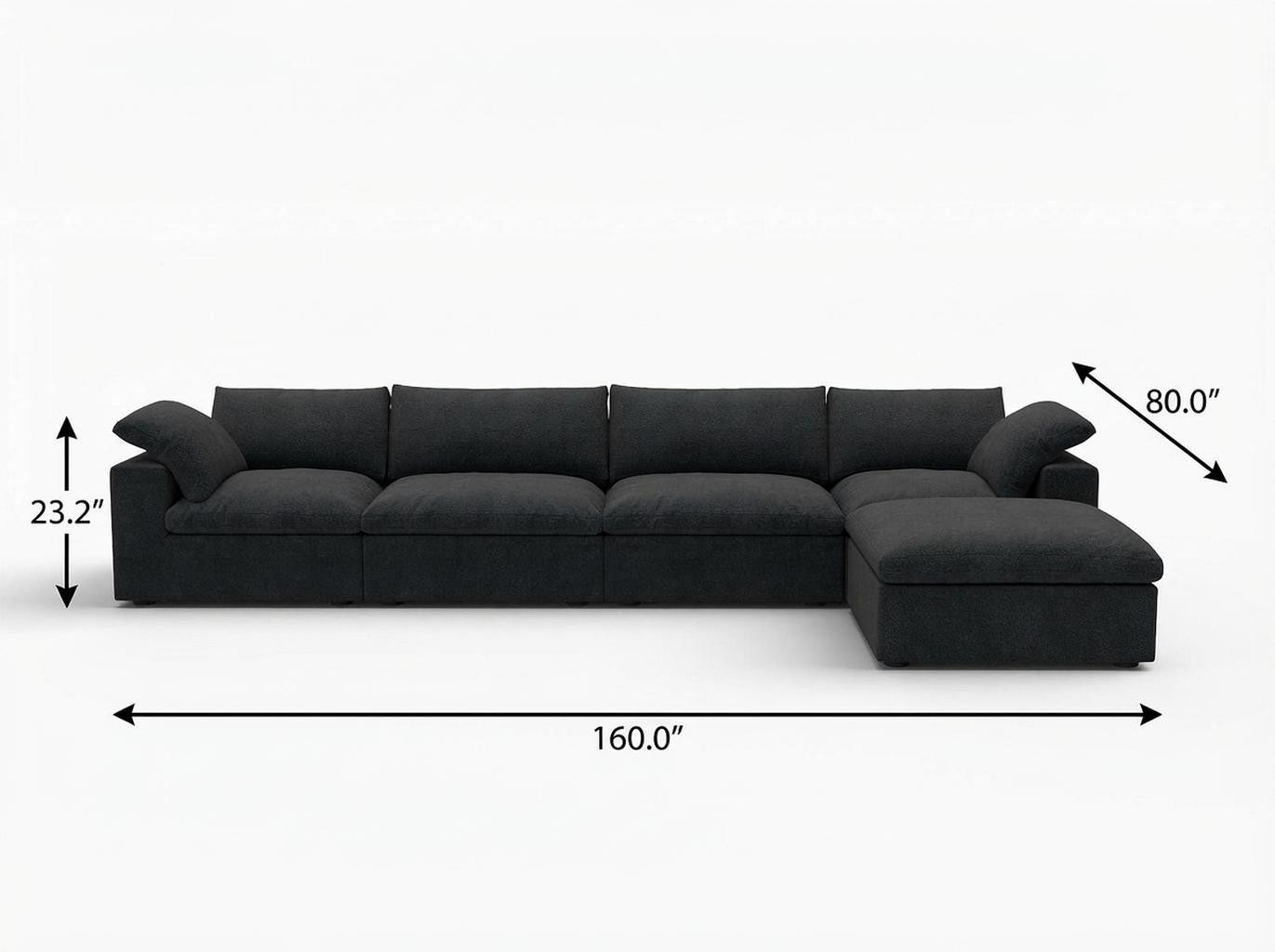 Designed for comfort and good looks, this black linen blend modular l shaped five piece corner sectional is a great option to anchor your space. Solid colors give you lots of decorative options and are easy to work into your decor scheme. Track arms offer a comfy place to rest. Black solid wood legs effortlessly elevate the room and add a touch of contemporary design. Great for everyday lounging and for entertaining, sectionals are an ideal way to seat multiple people. 23.20-inch h x 160.00-inch w x 80.00-inch d.