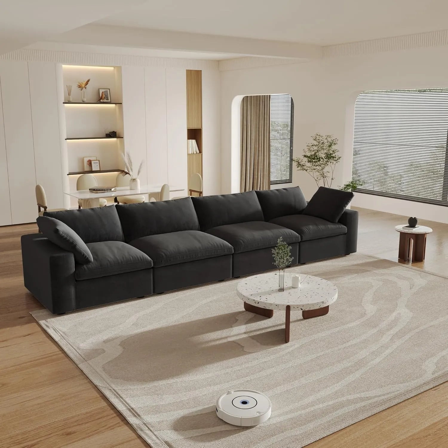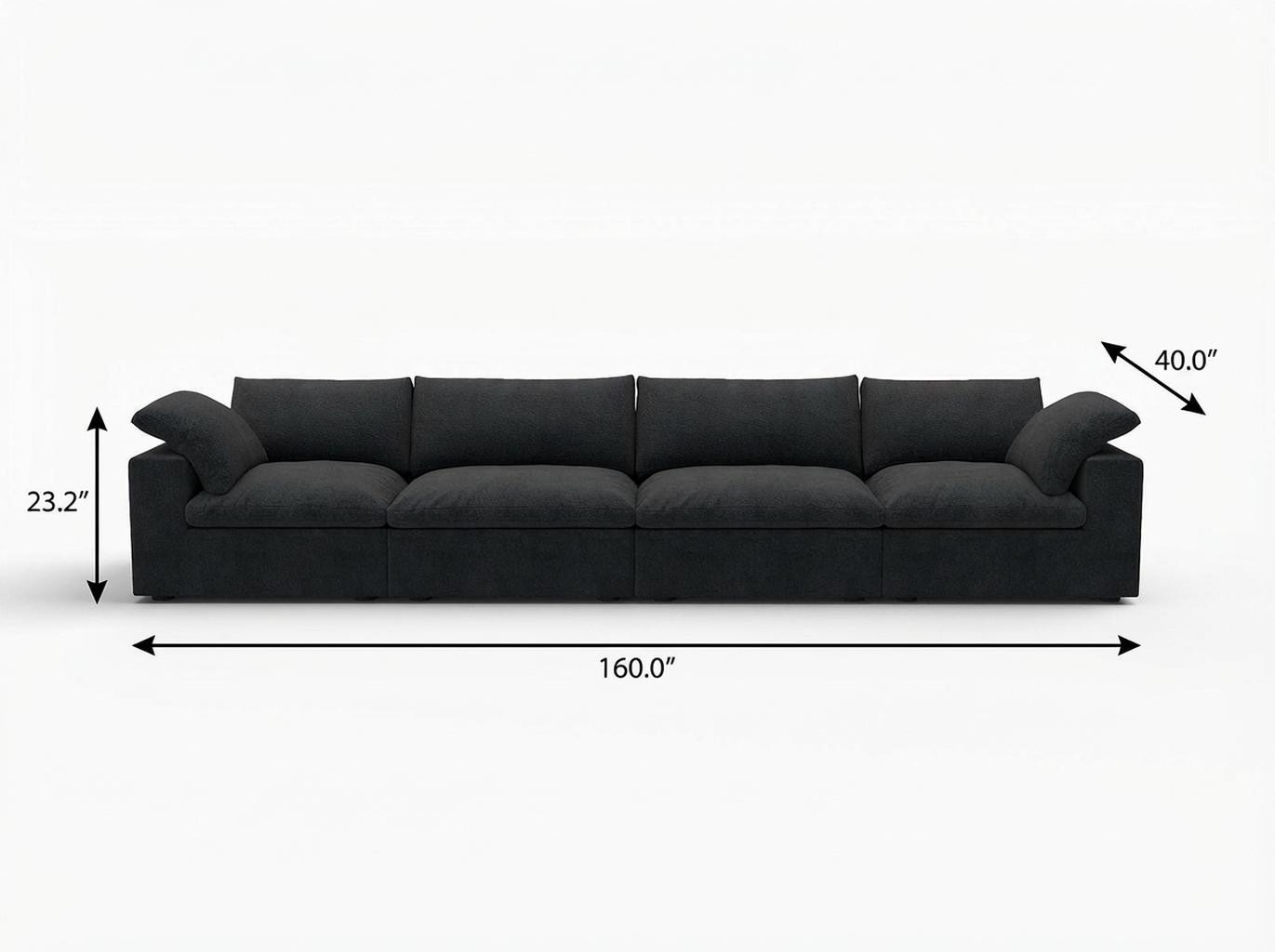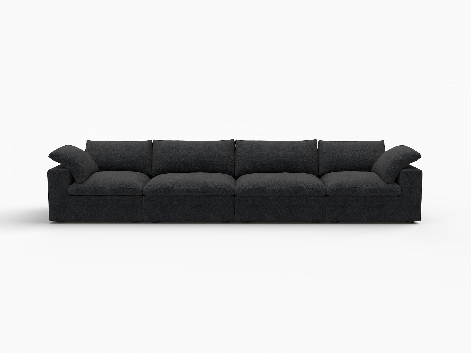 Elevate your lounging to the next level with this black linen blend modular rectangular four piece corner sectional. Solid colors give you lots of decorative options and are easy to work into your decor scheme. Track arms offer a comfy place to rest. Black solid wood legs effortlessly elevate the room and add a touch of contemporary design. Great for everyday lounging and for entertaining, sectionals are an ideal way to seat multiple people. 23.20-inch h x 160.00-inch w x 40.00-inch d.
