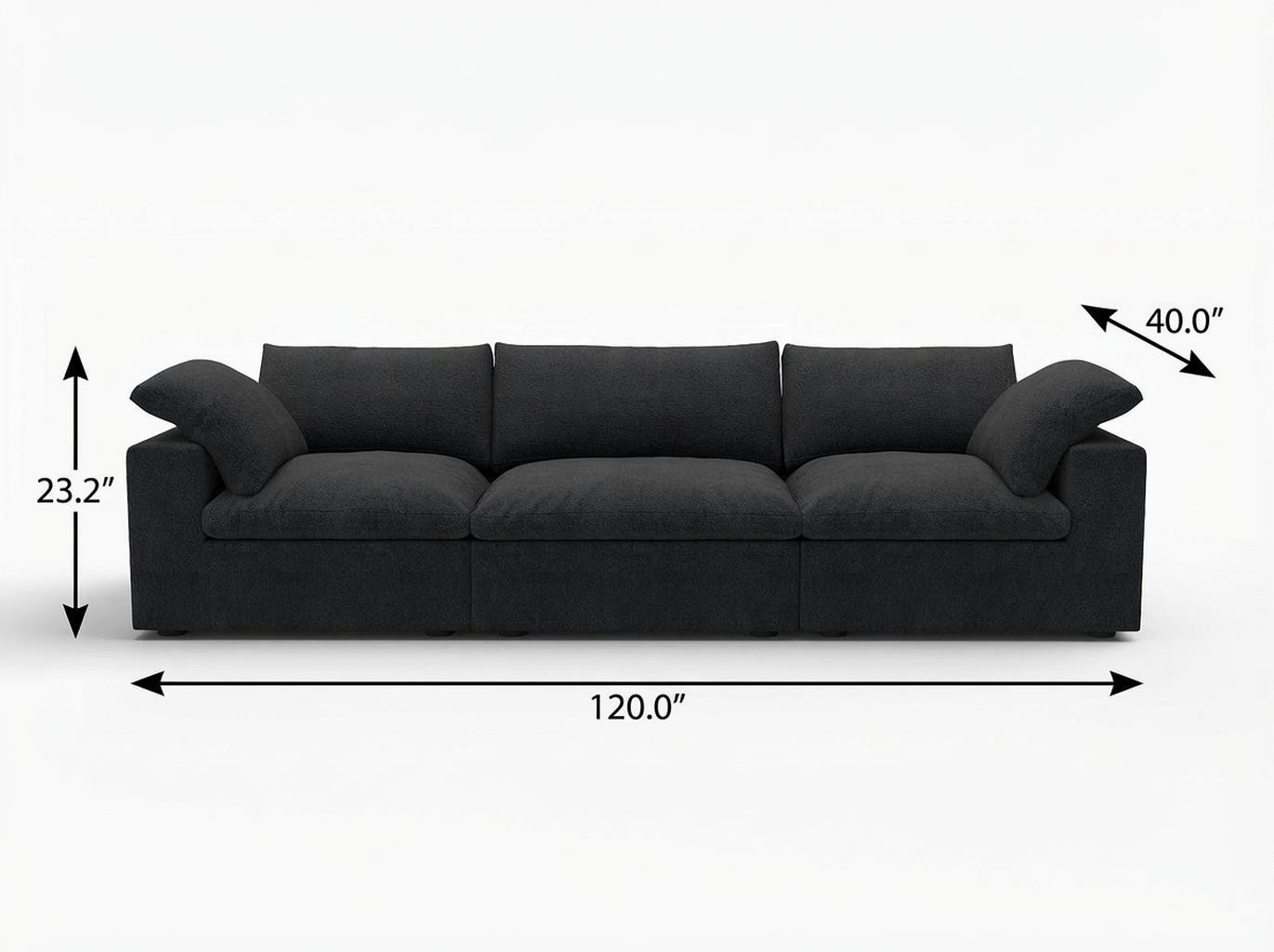 Add an air of fashion to your space with this fabulous black linen blend modular rectangular three piece corner sectional. Solid colors give you lots of decorative options and are easy to work into your decor scheme. Track arms offer a comfy place to rest. Black solid wood legs effortlessly elevate the room and add a touch of contemporary design. A great showpiece for your room, this sectional is a must have. 23.20-inch h x 120.00-inch w x 40.00-inch d.