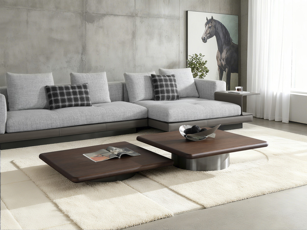 steel square pedestal coffee table, square pedestal coffee table, pedestal coffee table, 39" brown silver wood stainless, stainless steel square pedestal coffee |