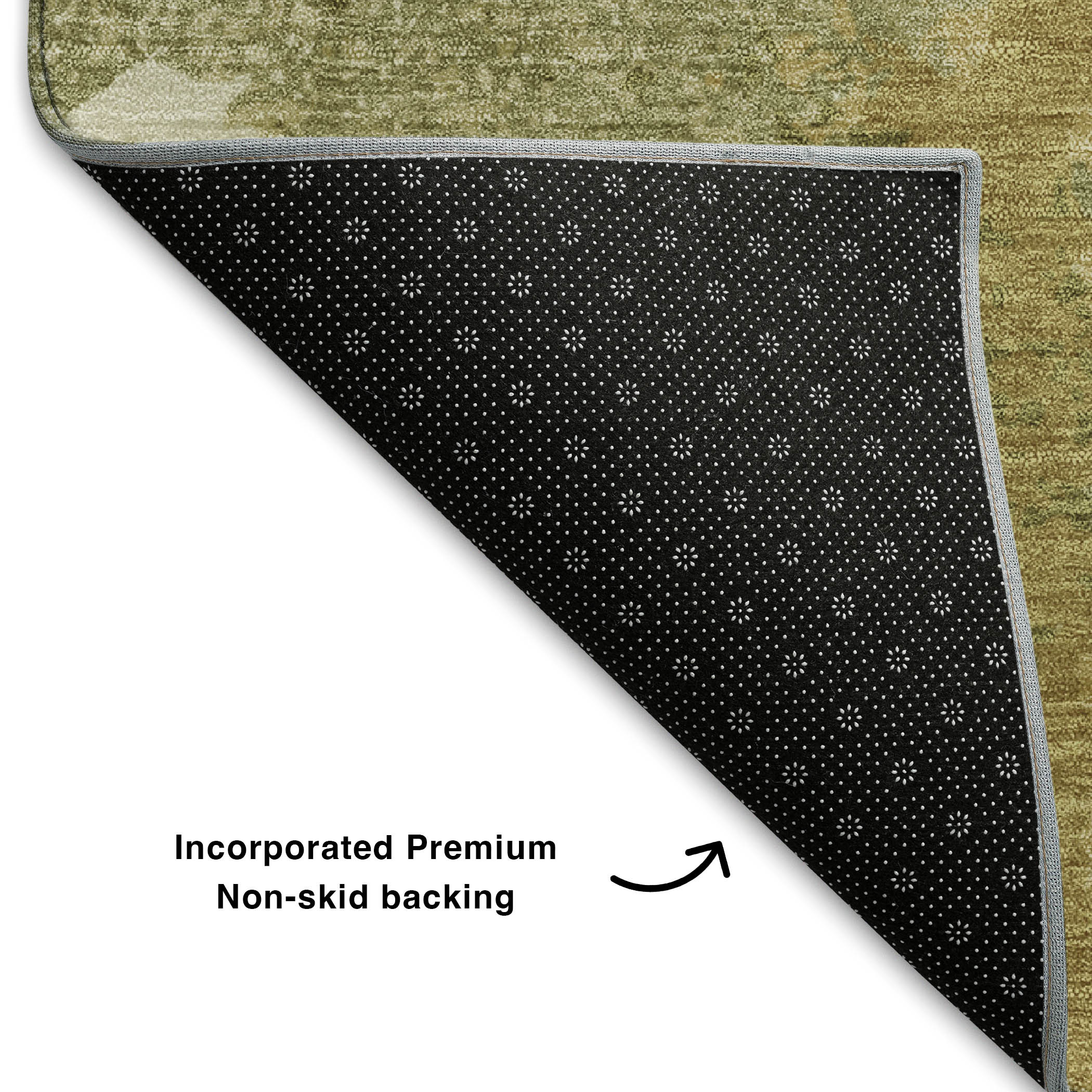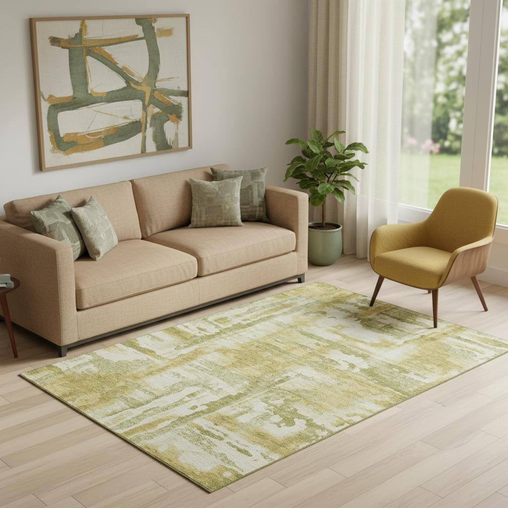 This 5-foot x 8-foot sage and ivory abstract washable area rug with uv protection, is a great way to add warmth to a room. Ideal for spaces with kids and pets, this rug is stain resistant to help repel dirt and spilled liquids. Built to last, this rug crafted from polyester fibers is known for its durability and long lasting appeal. Rugs are a great way to showcase your style, hide imperfections, warm your home and reduce noise. This larger sized, transitional styled rug is ready to create a focal point or statement piece in your room. 60.00-inch h x 90.00-inch w x 0.39-inch d.