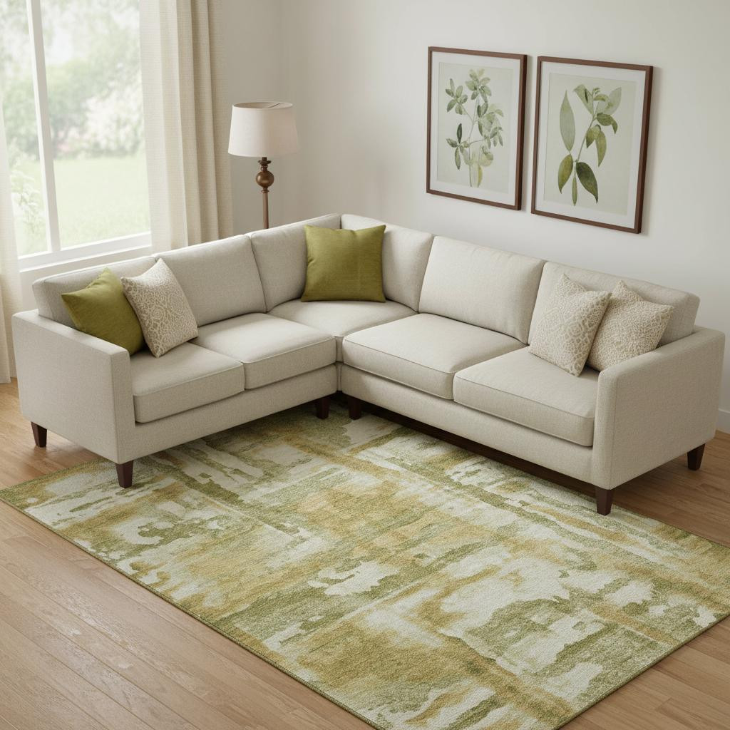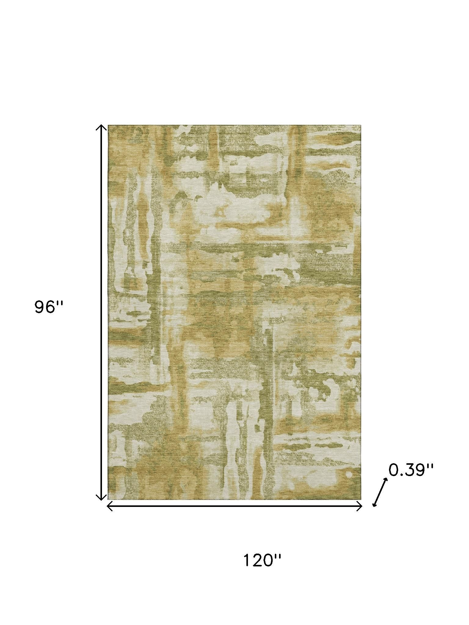 This 8-foot x 10-foot sage and ivory abstract washable area rug with uv protection, is a great way to add warmth to a room. Ideal for spaces with kids and pets, this rug is stain resistant to help repel dirt and spilled liquids. Built to last, this rug crafted from polyester fibers is known for its durability and long lasting appeal. Rugs are a great way to showcase your style, hide imperfections, warm your home and reduce noise. This larger sized, transitional styled rug is ready to create a focal point or statement piece in your room. 96.00-inch h x 120.00-inch w x 0.39-inch d.