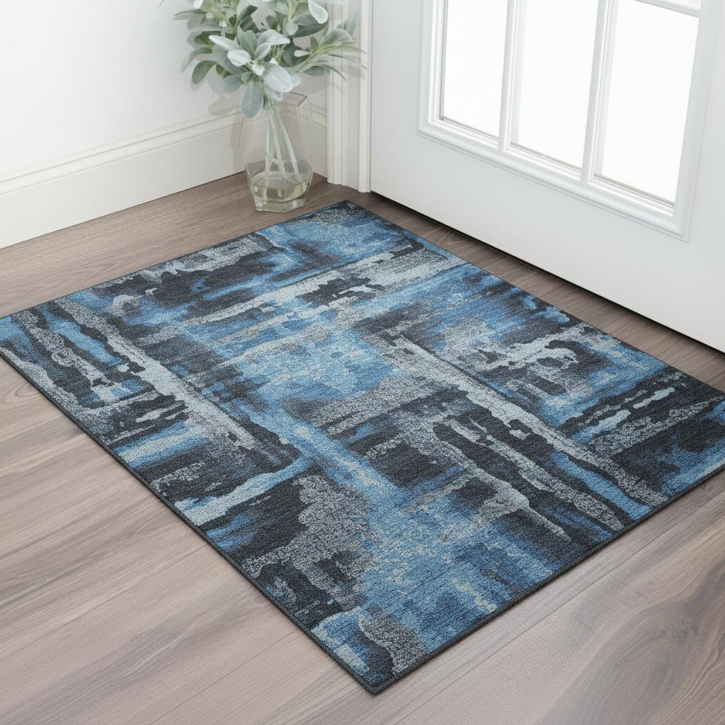 Add some artistry to your room with this 3-foot x 5-foot black and blue abstract washable area rug with uv protection. Ideal for spaces with kids and pets, this rug is stain resistant to help repel dirt and spilled liquids. Built to last, this rug crafted from polyester fibers is known for its durability and long lasting appeal. Rugs are a great way to showcase your style, hide imperfections, warm your home and reduce noise. This smaller sized, transitional styled rug is just what you need for your walkway, bedside, in front of door, cabinet, refrigerator, or chair. 36.00-inch h x 60.00-inch w x 0.39-inch d.