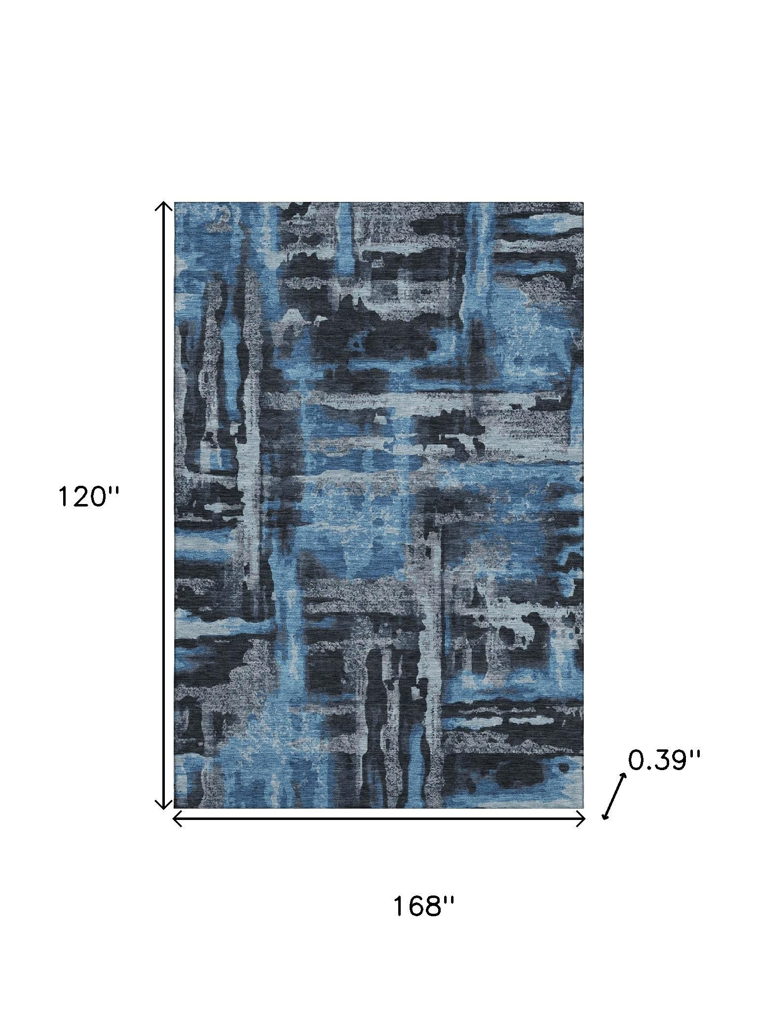 This 10-foot x 14-foot black and blue abstract washable area rug with uv protection, is a great way to add warmth to a room. Ideal for spaces with kids and pets, this rug is stain resistant to help repel dirt and spilled liquids. Built to last, this rug crafted from polyester fibers is known for its durability and long lasting appeal. Rugs are a great way to showcase your style, hide imperfections, warm your home and reduce noise. This larger sized, transitional styled rug is ready to create a focal point or statement piece in your room. 120.00-inch h x 168.00-inch w x 0.39-inch d.