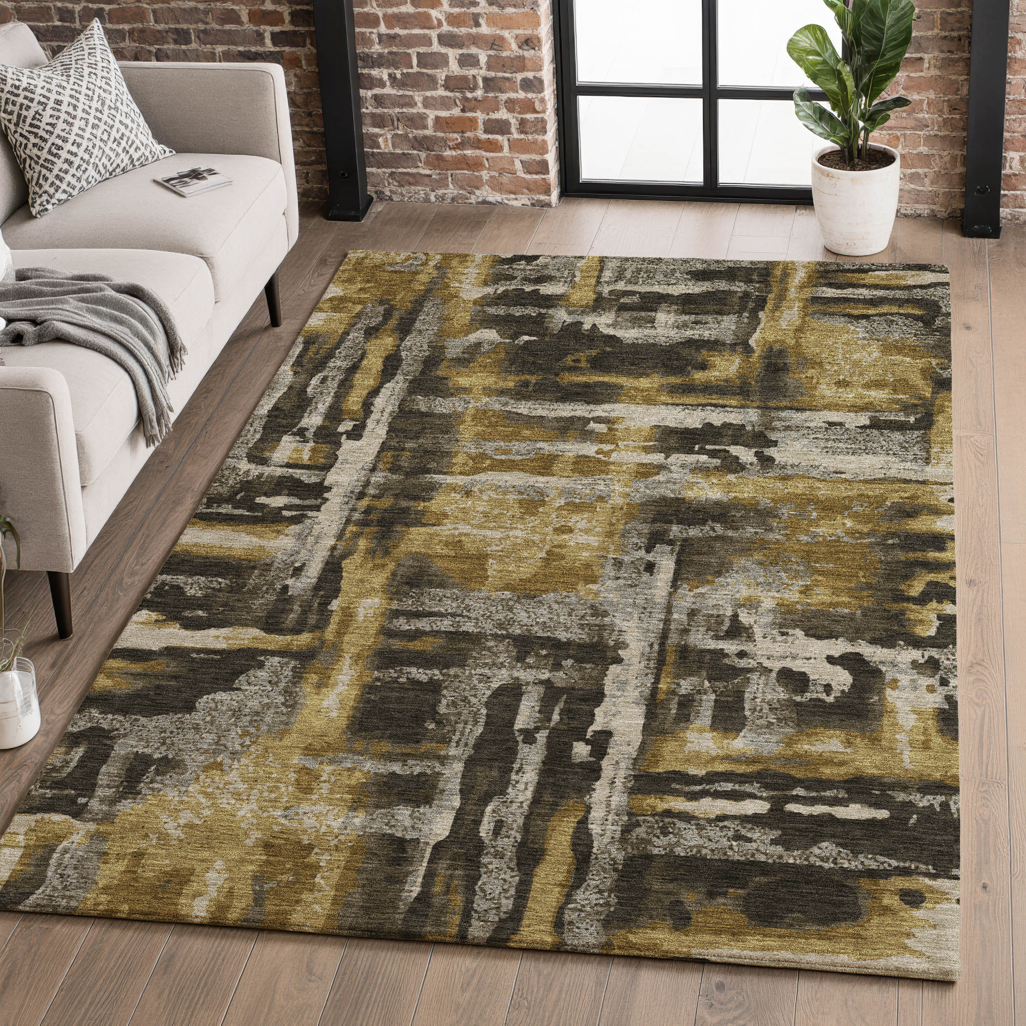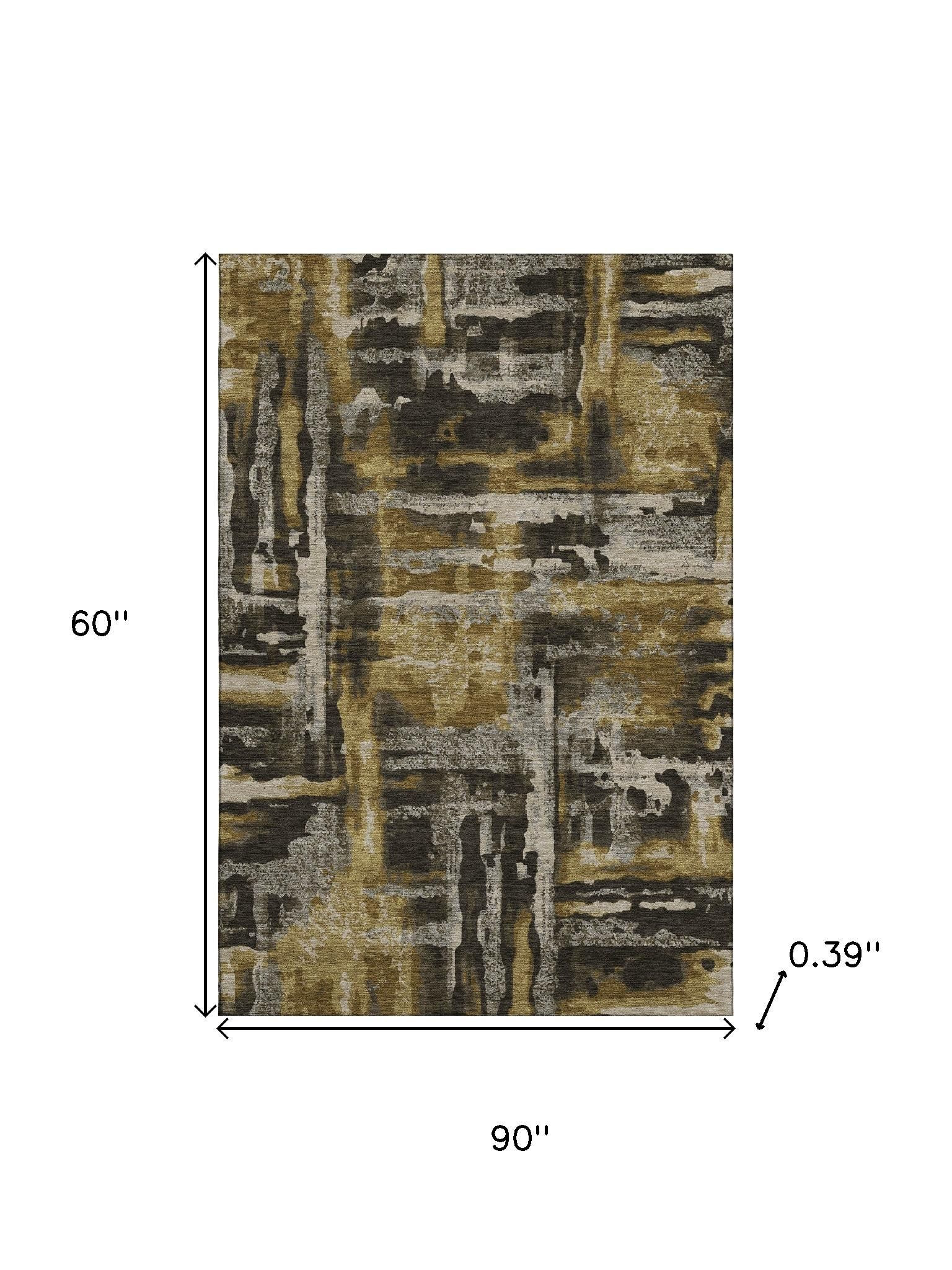 Add some artistry to your room with this 5-foot x 8-foot coffee and gray abstract washable area rug with uv protection. Ideal for spaces with kids and pets, this rug is stain resistant to help repel dirt and spilled liquids. Built to last, this rug crafted from polyester fibers is known for its durability and long lasting appeal. Rugs are a great way to showcase your style, hide imperfections, warm your home and reduce noise. This larger sized, transitional styled rug is ready to create a focal point or statement piece in your room. 60.00-inch h x 90.00-inch w x 0.39-inch d.